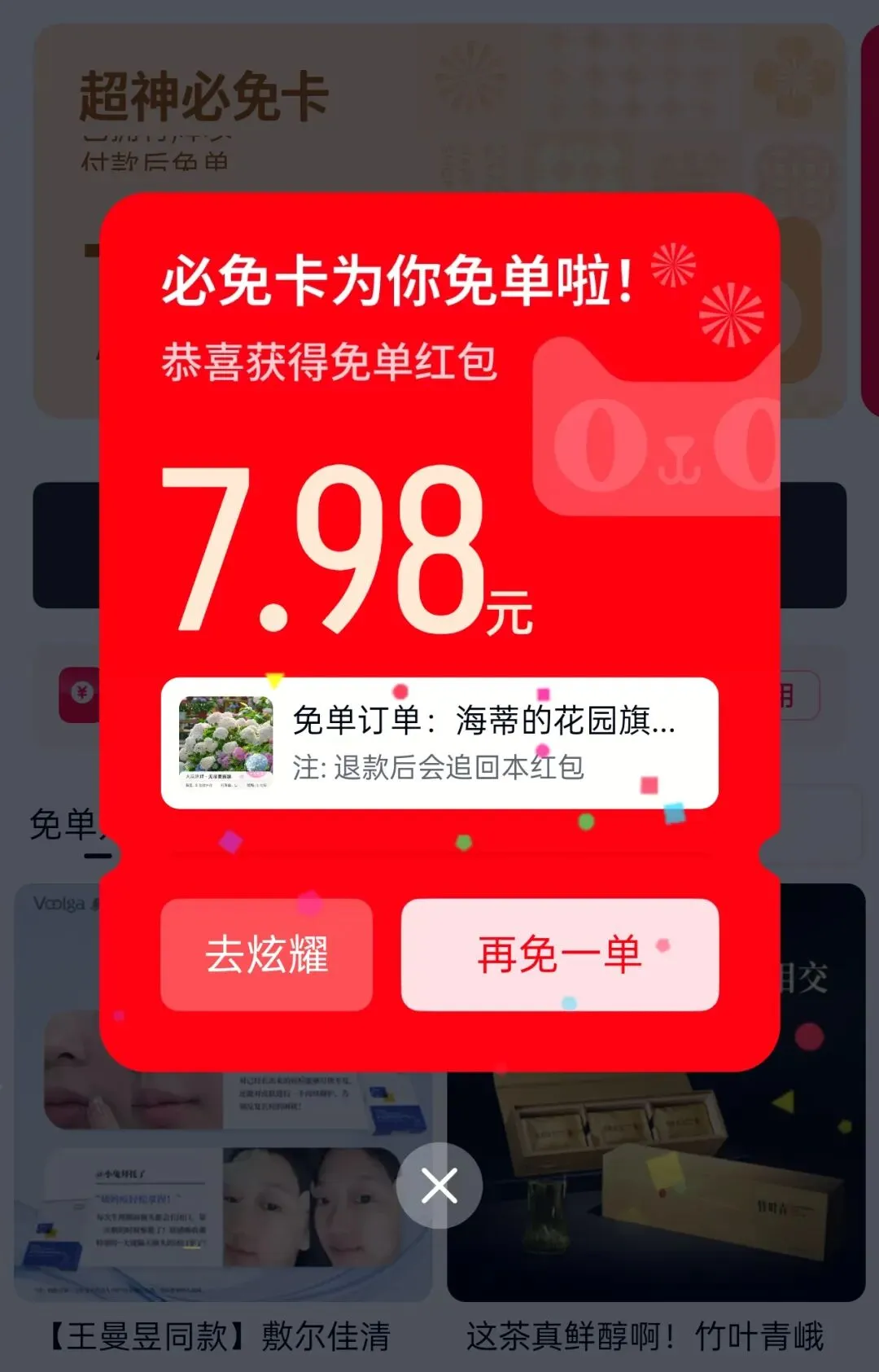 比如我抽到7.98,我买个7.98的东西,她会给我返7.98的红包,注意不是现金