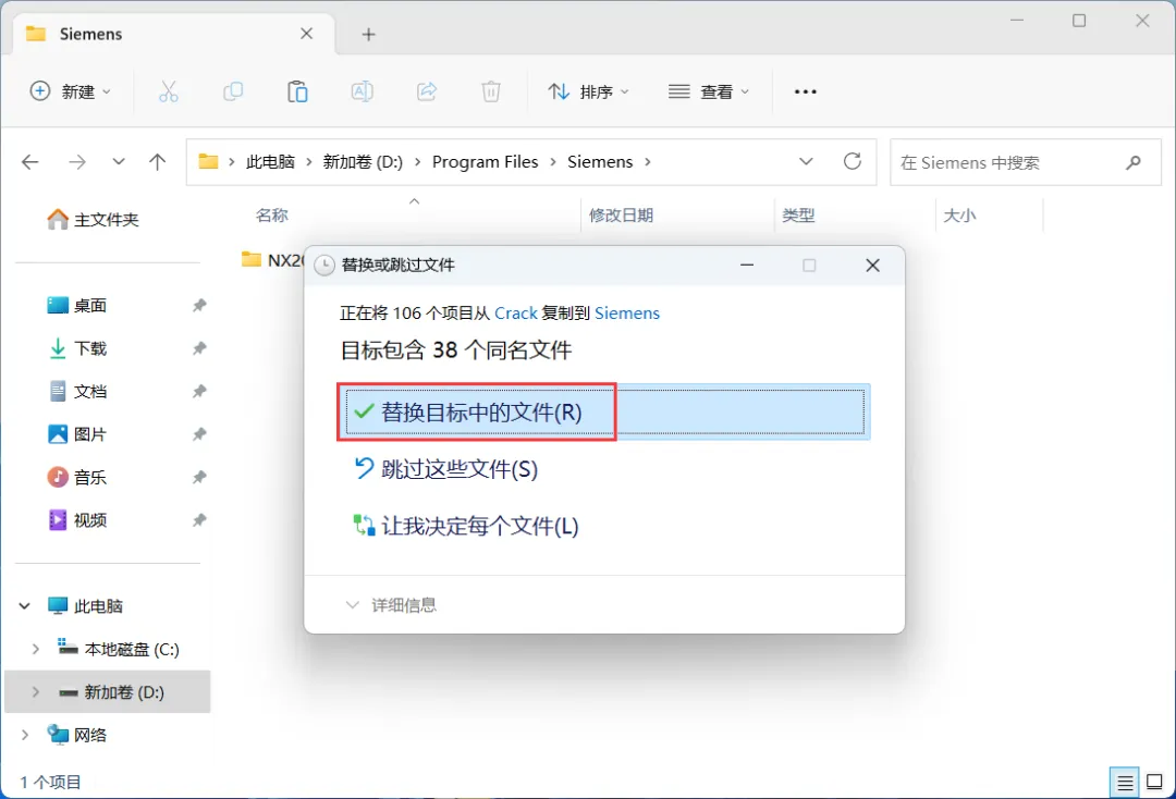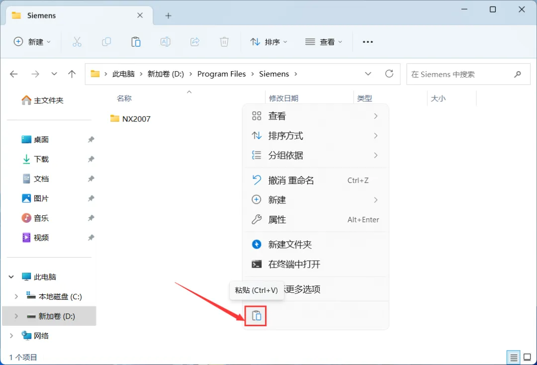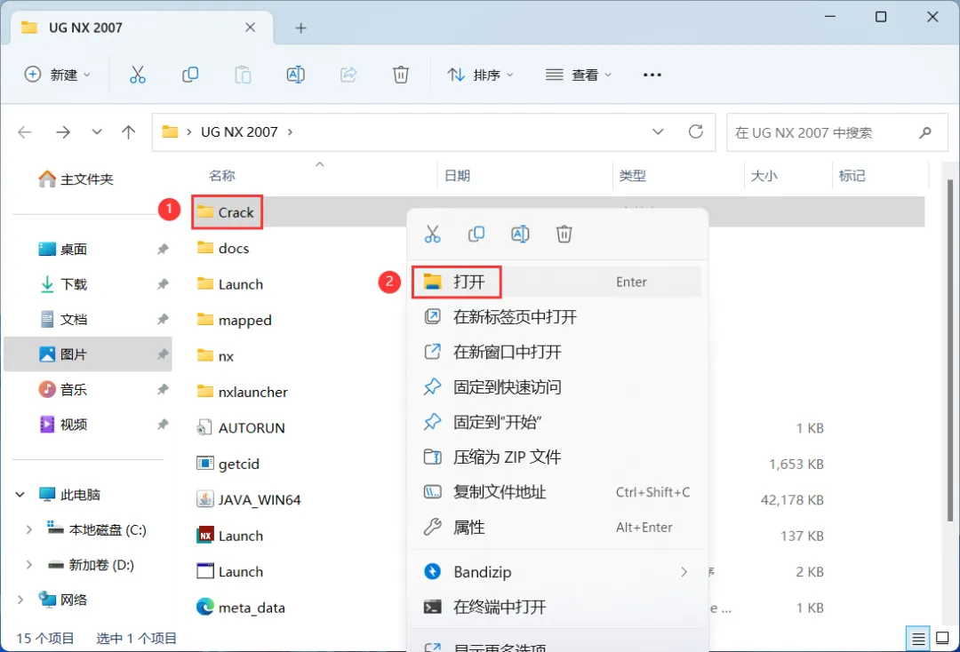 24、回到Crack文件夹,找到【NX2007】文件夹,右键点击【复制按钮】