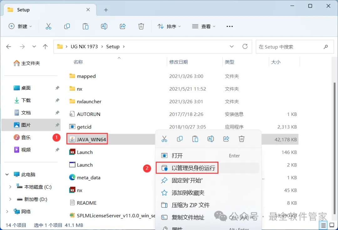 6、找到【安装NX许可服务】应用程序,右键选择【以管理员身份运行】它