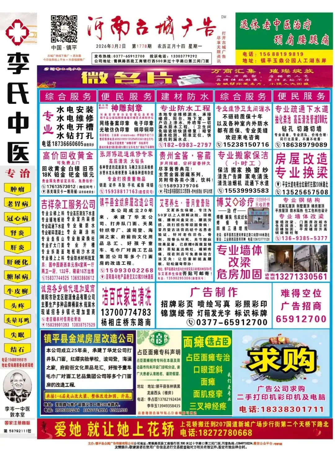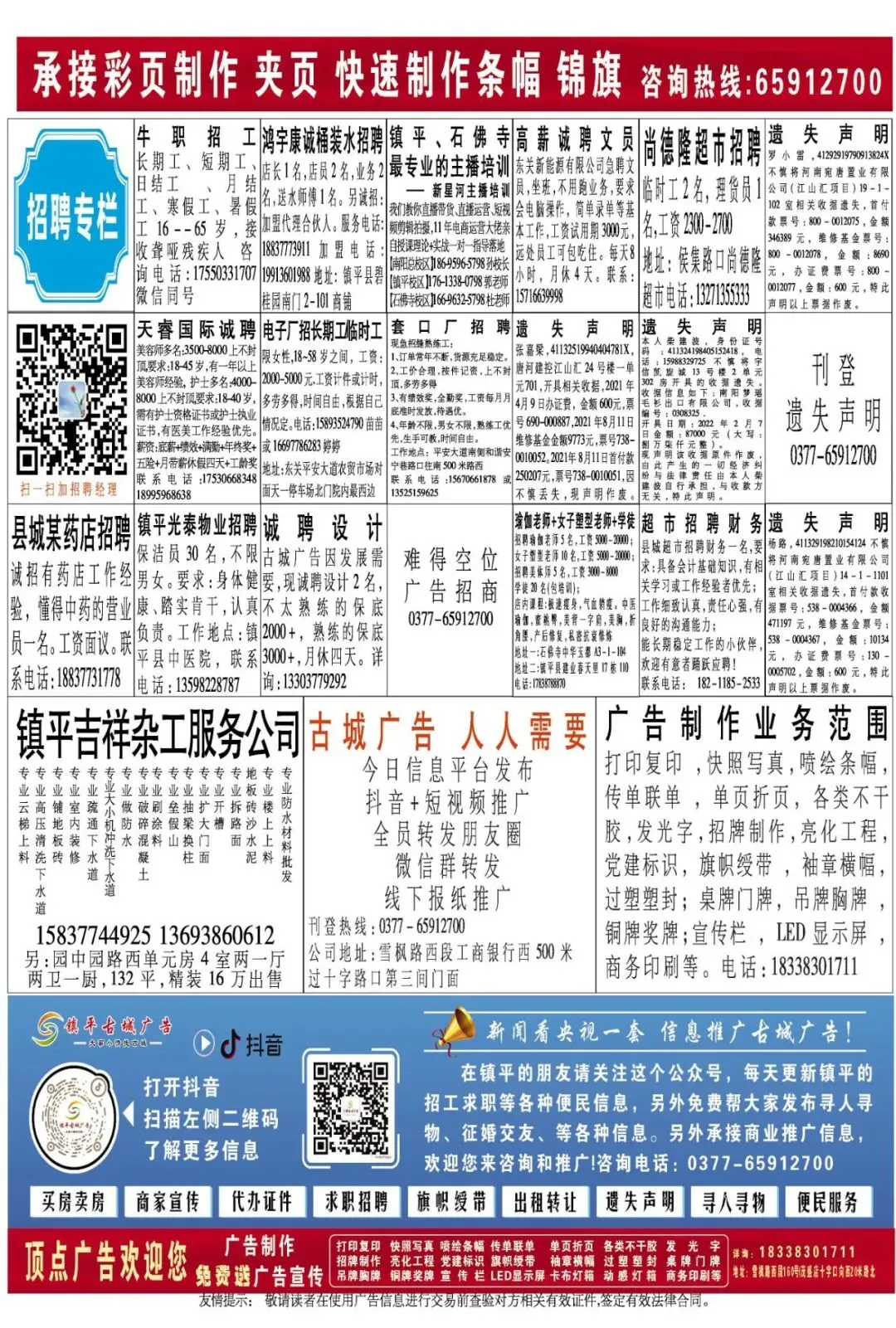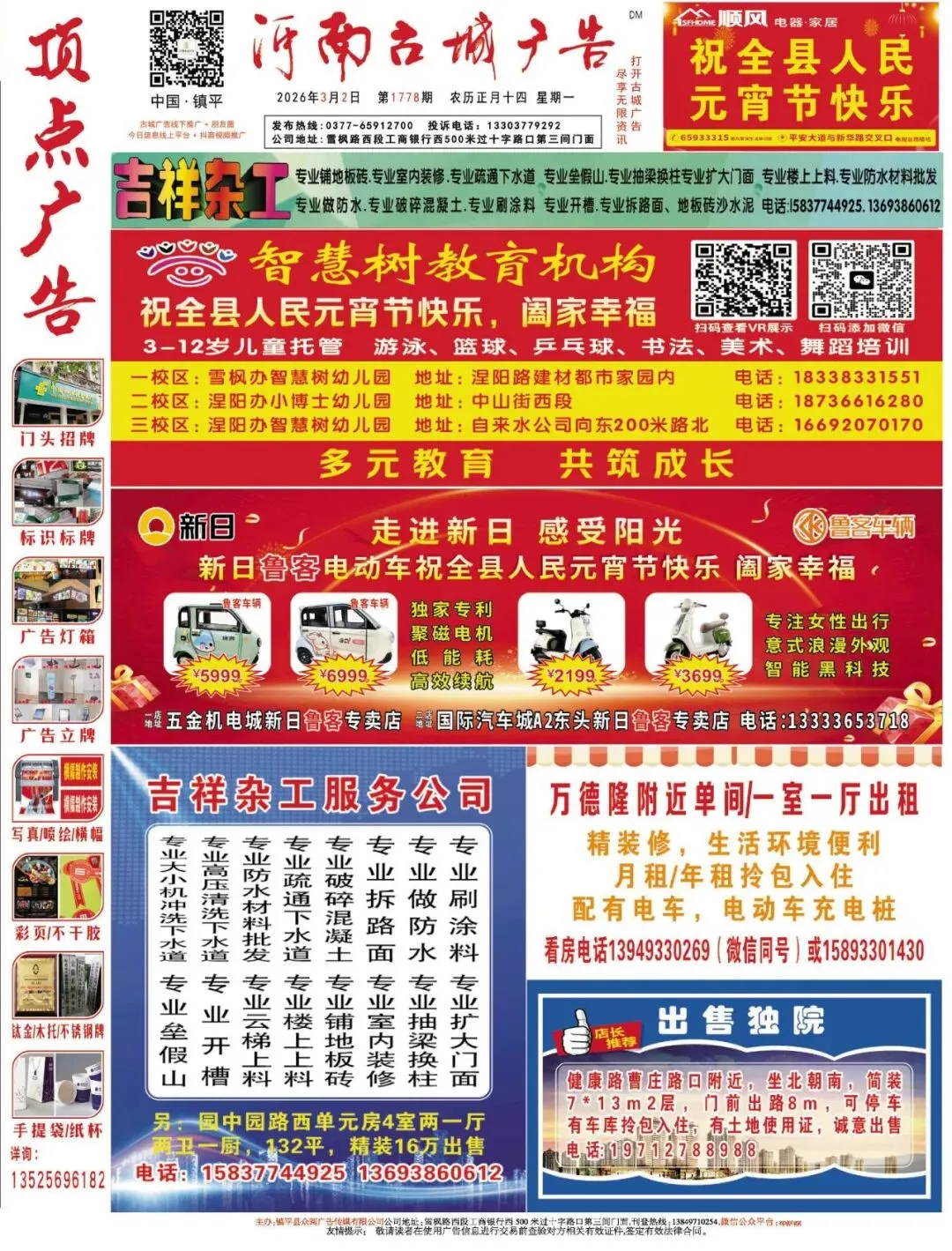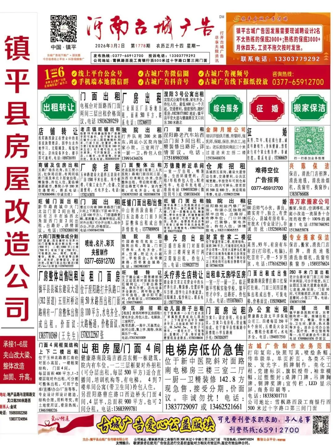 《镇平古城广告》1778期线下报纸电子版