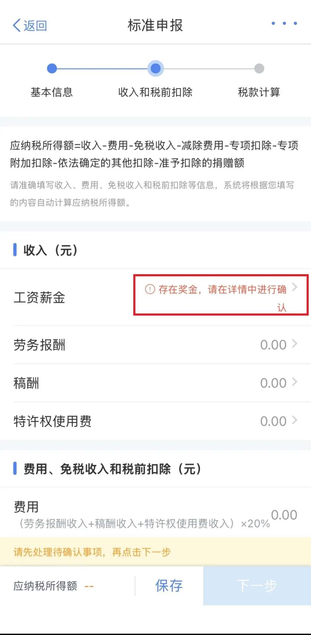 系统会归集全年的工资薪金、劳务报酬、稿酬、特许权使用费四项综合所得的年度收入和纳税数据,并会填写到相应的申报栏次。 您可点击对应项目,进入详情界面核对。若您当年度申报过全年一次性奖金,则您需要在【工资薪金】详情页进行确认。