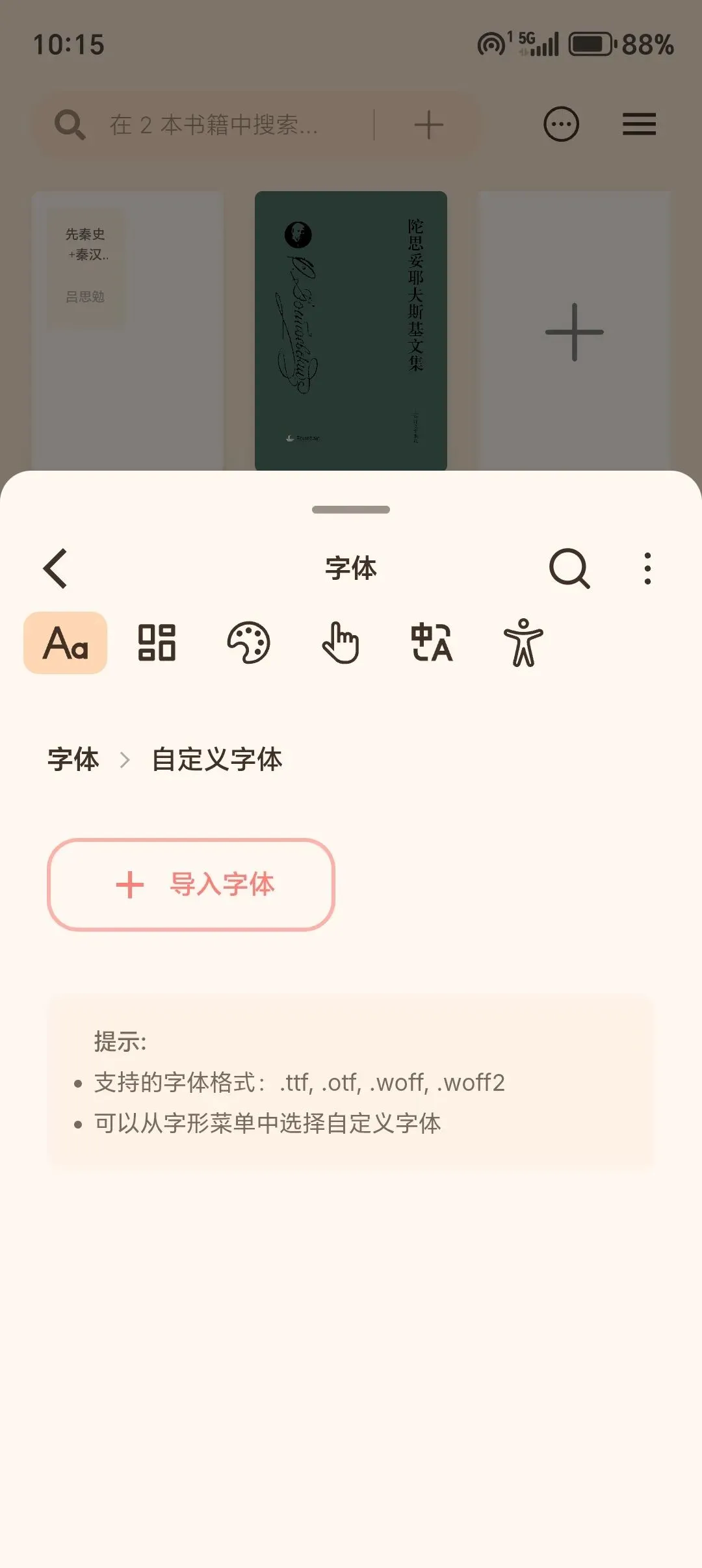 而且还支持自定义上传阅读背景图片、字体、字型。