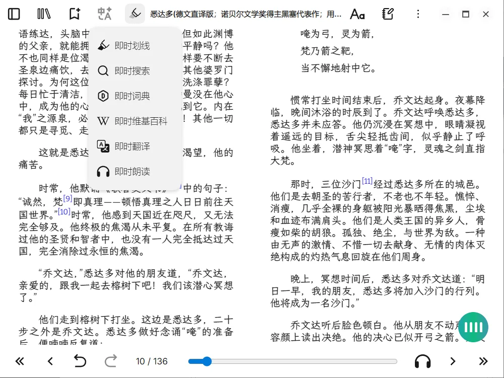 第一,Readest内置词典、维基百科查询功能,快速查找词汇和术语。