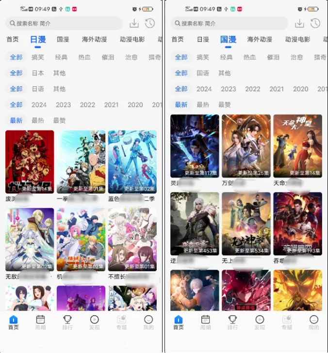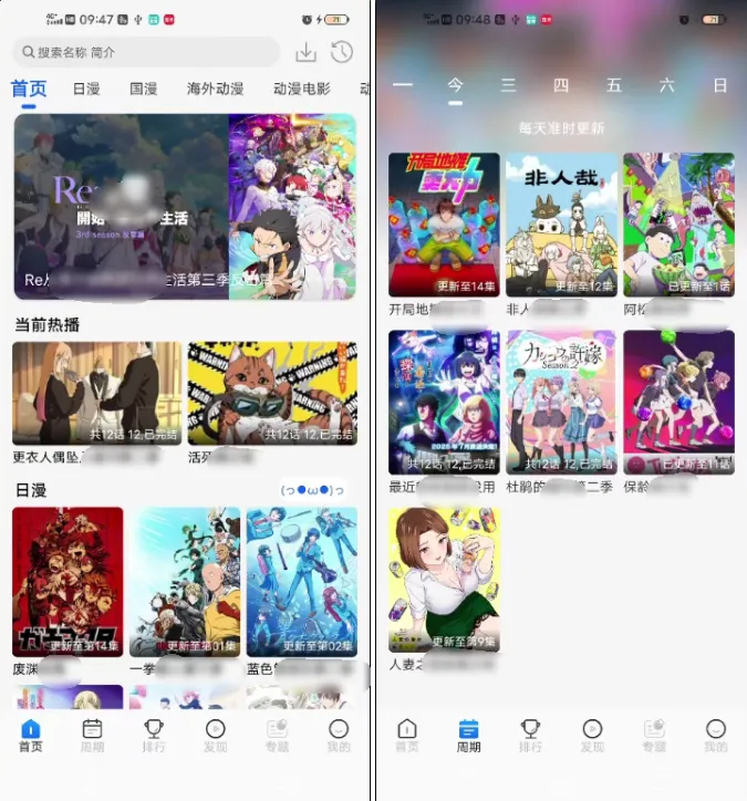 首页直接分好:国漫、日漫、新番、排行榜、更新时间表,找番非常方便。