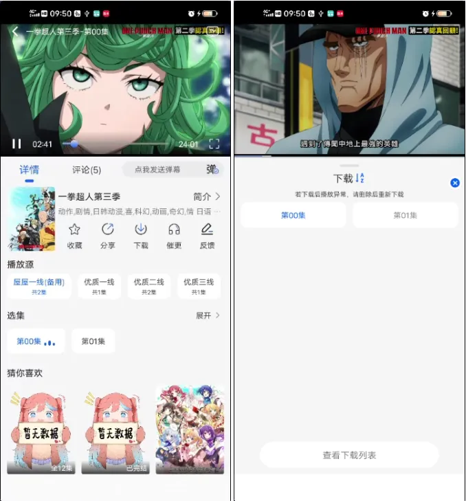 点开任意一部动漫,加载速度快、画质清晰、播放流畅,基本不卡顿。而且还支持离线下载,出门没网也能看。