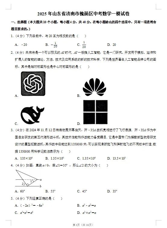 【免费下载】2025年济南槐荫区【数学】一模真题