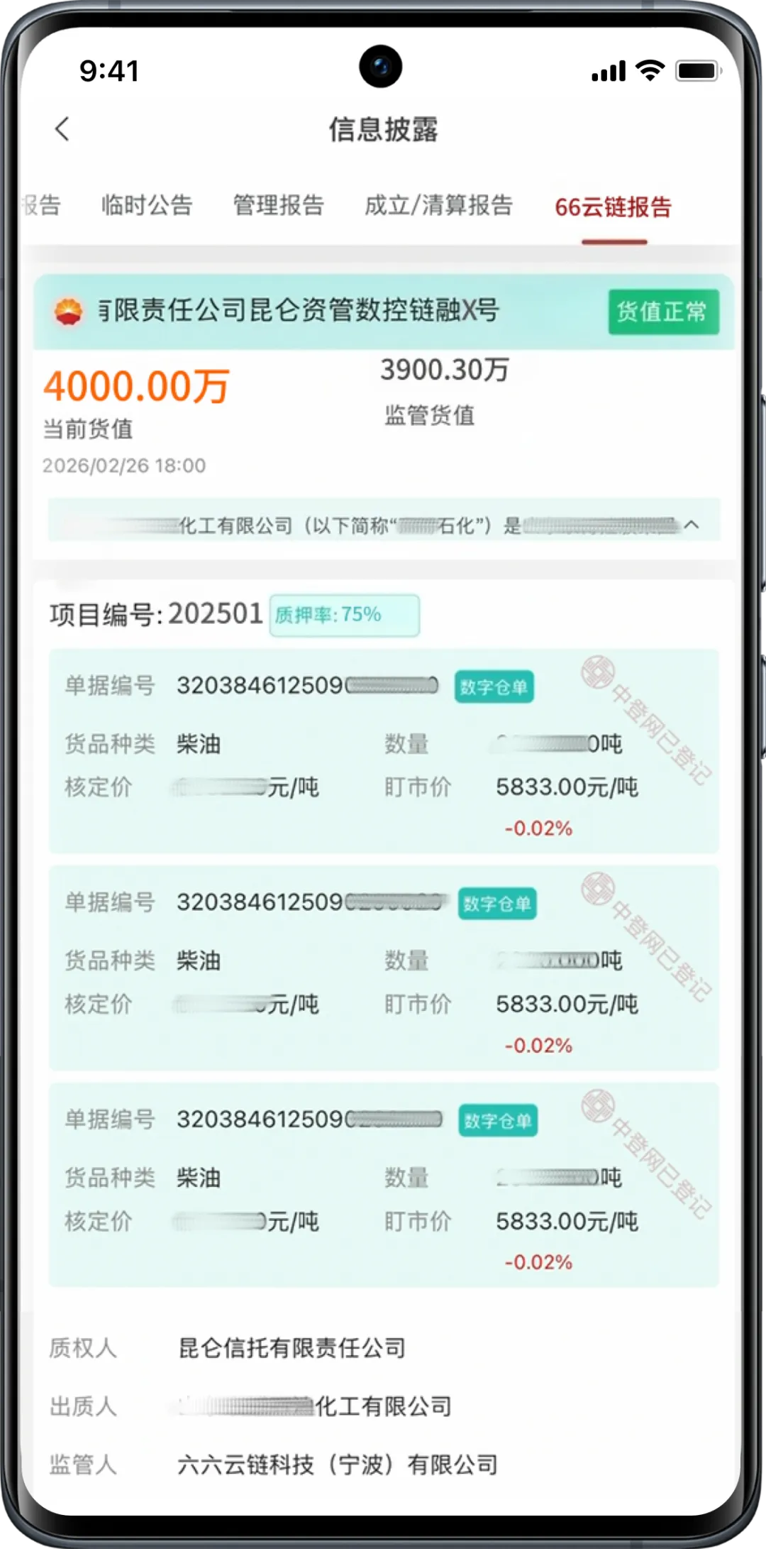 此次功能更新后,认购“数控链融”系列产品的个人投资者,可通过昆仑信托APP定向实时查阅产品增信措施与风险保障全维度信息,清晰掌握底层液体押品运行状态、市场估值、货物实时情况及风险预警提示,实现资产状况一目了然、动态可查、全程可溯。作为全国第一家落地该功能的信托公司,昆仑信托首次将能源化工大宗商品的底层押品信息,完整、实时地向合格投资者开放核验,彻底打破传统信托业务中底层资产信息不透明的行业痛点。