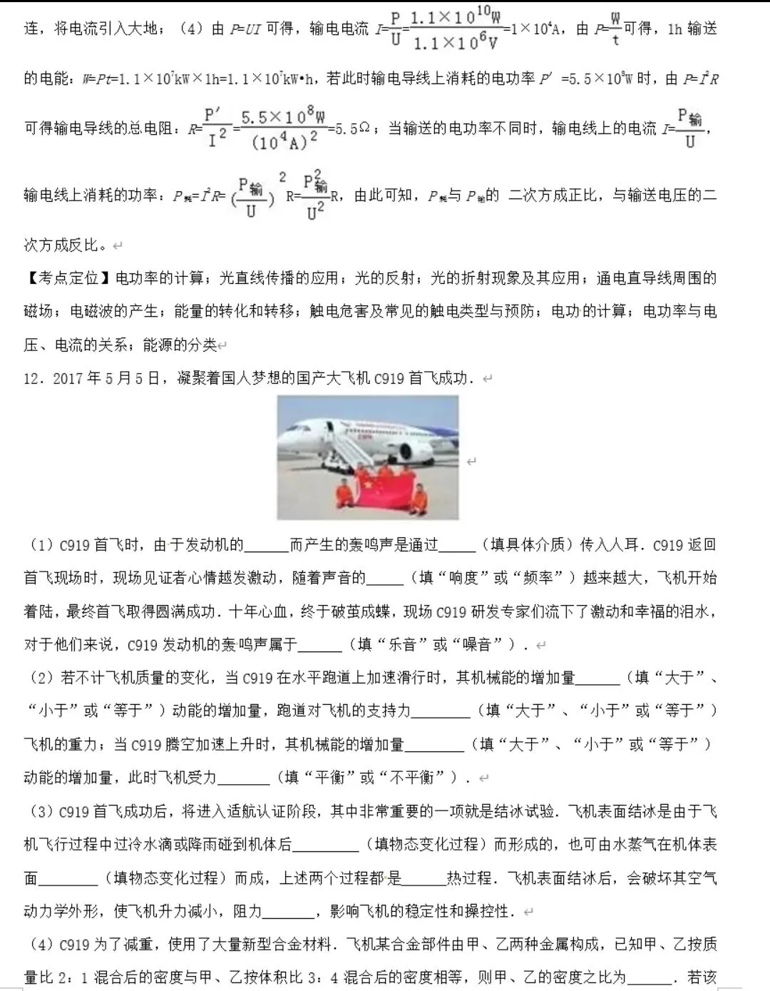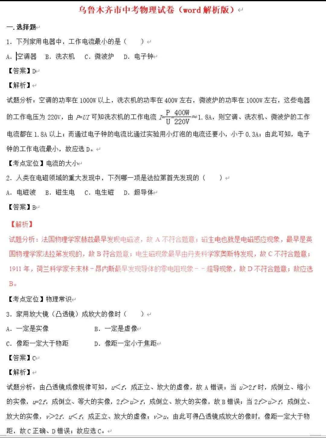 中考物理模拟卷(可打印)