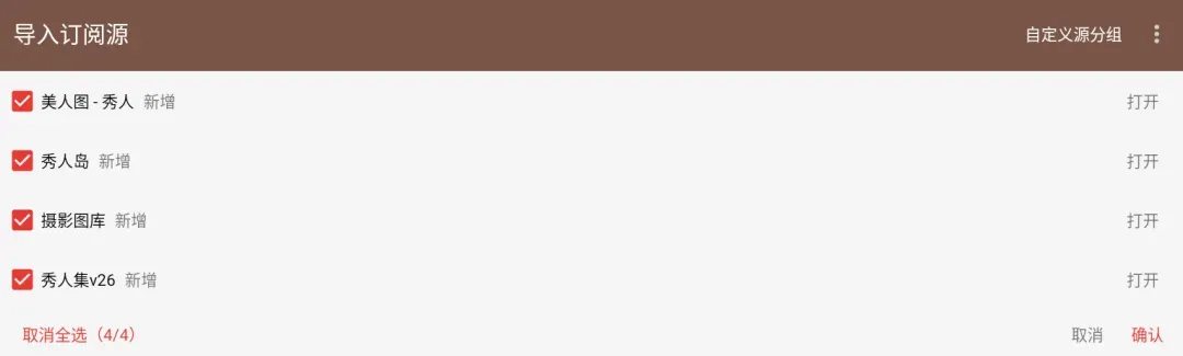书源名称:4个美图订阅源 2月27日测试可用