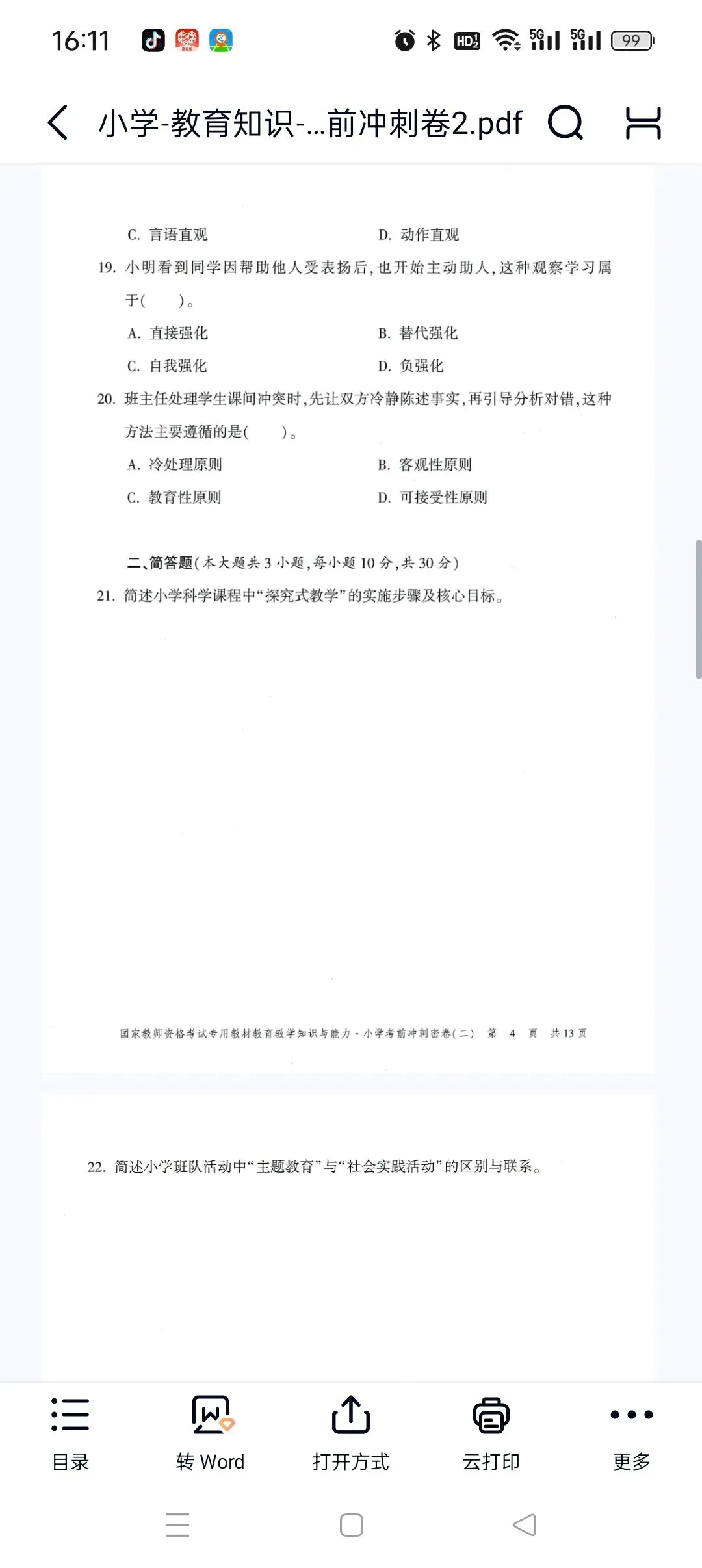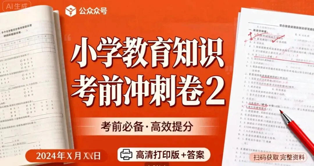 点击下载 完整版 小学-教育知识-考前冲刺卷2.pdf【高清打印版+答案】