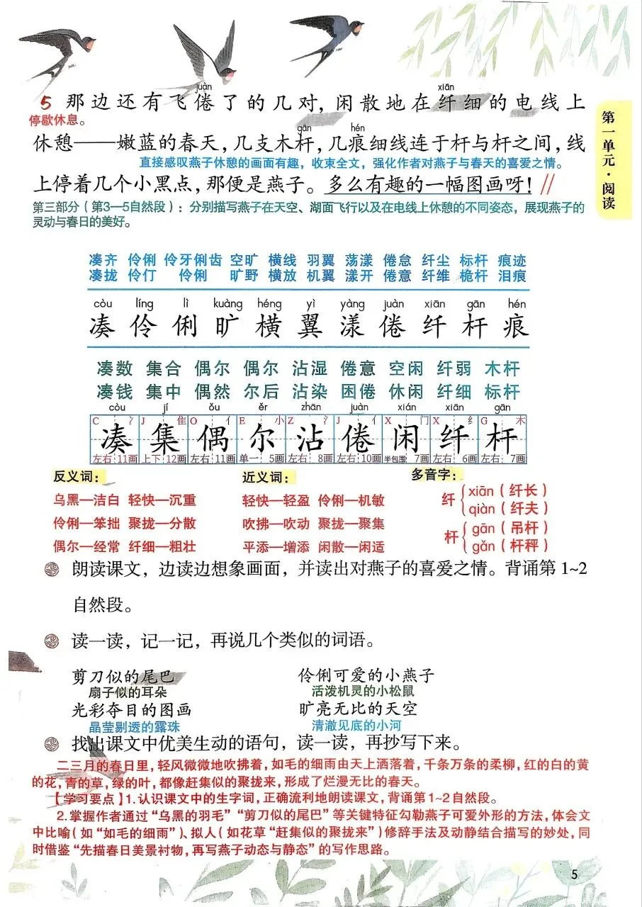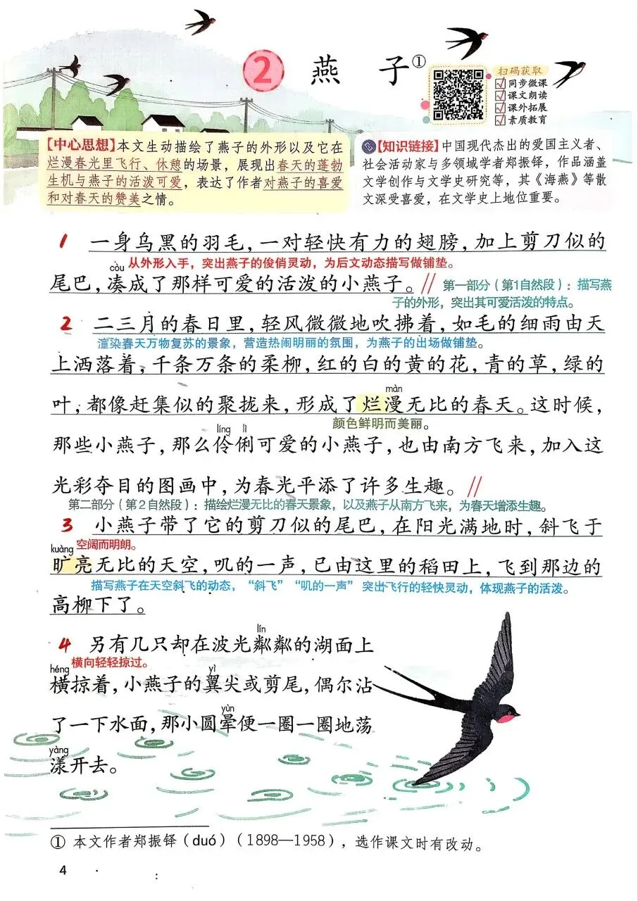 生字、多音字、近义词反义词、中心思想、段落大意、必背内容全部用标注+颜色区分,孩子不用自己瞎划,一看就懂。