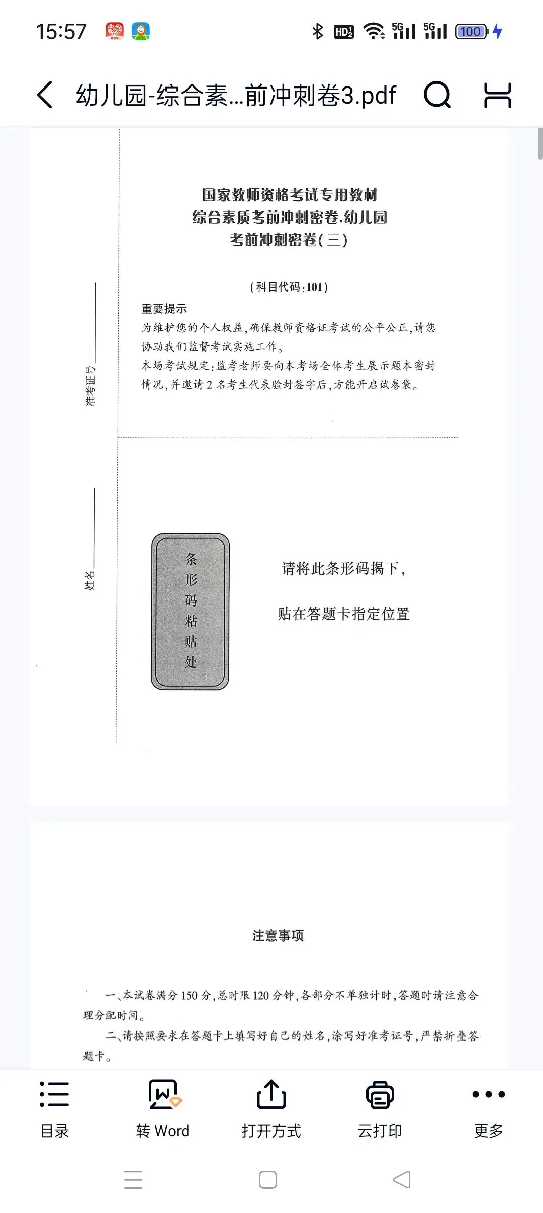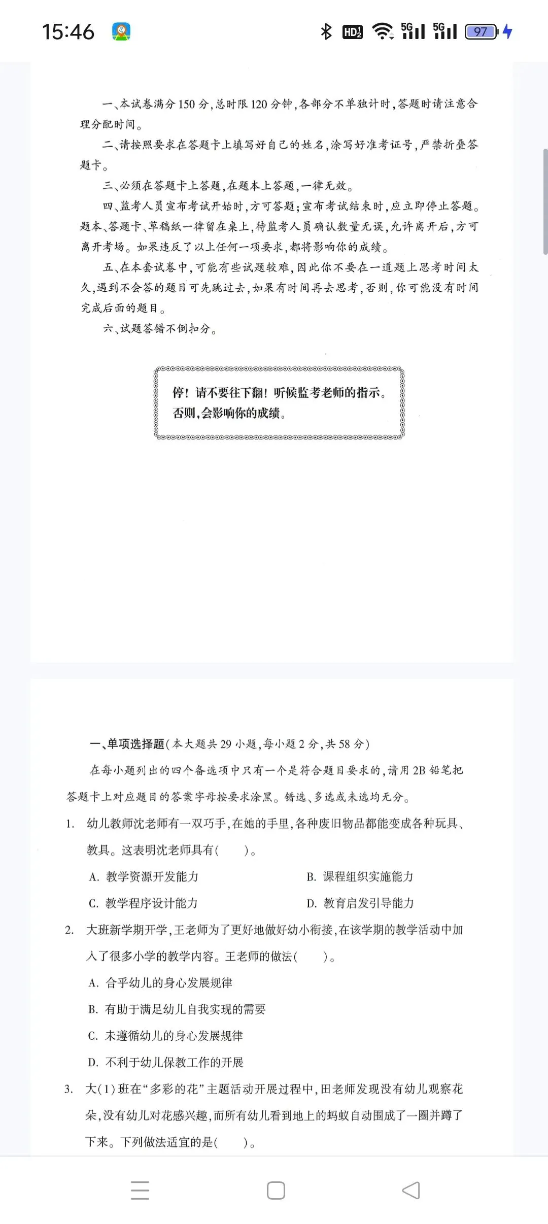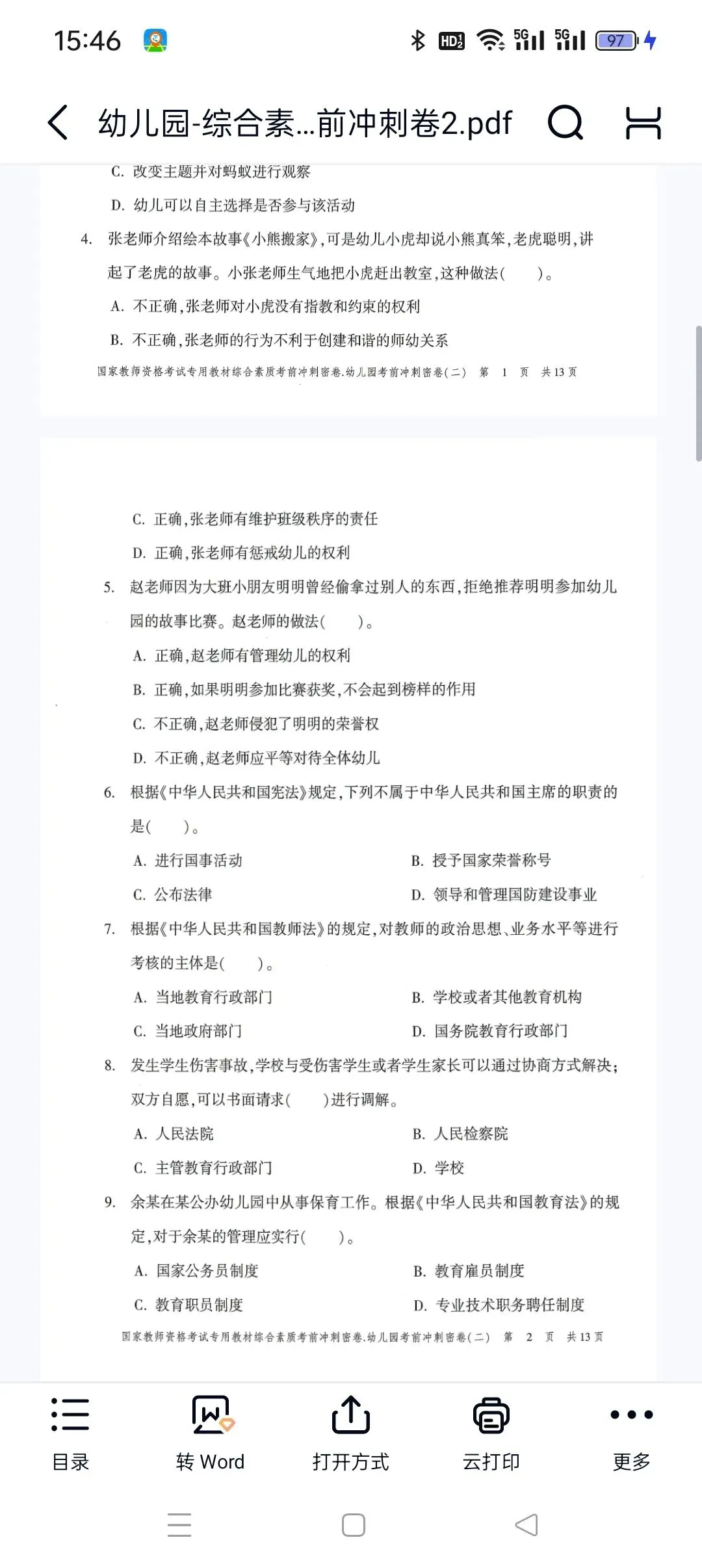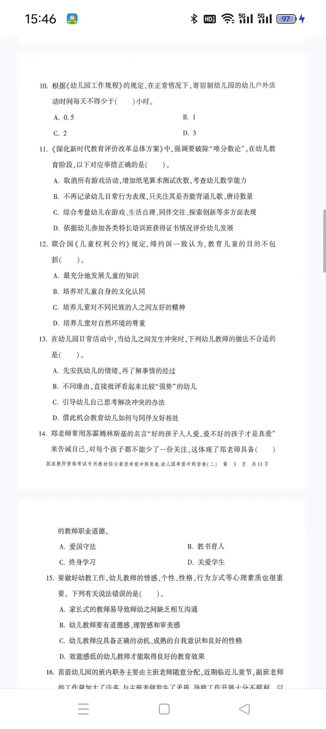 幼儿园-综合素质-考前冲刺卷2.pdf 【高清打印版+答案】