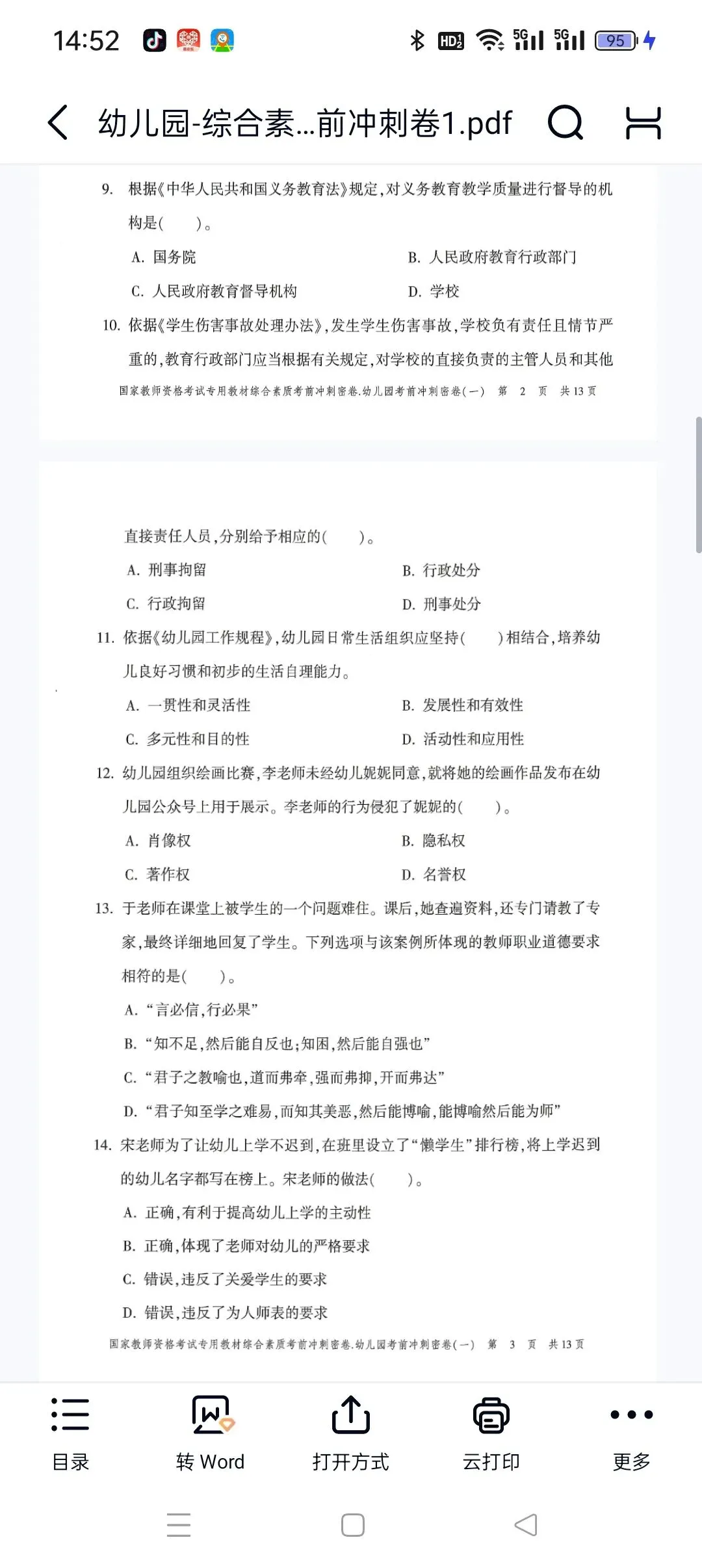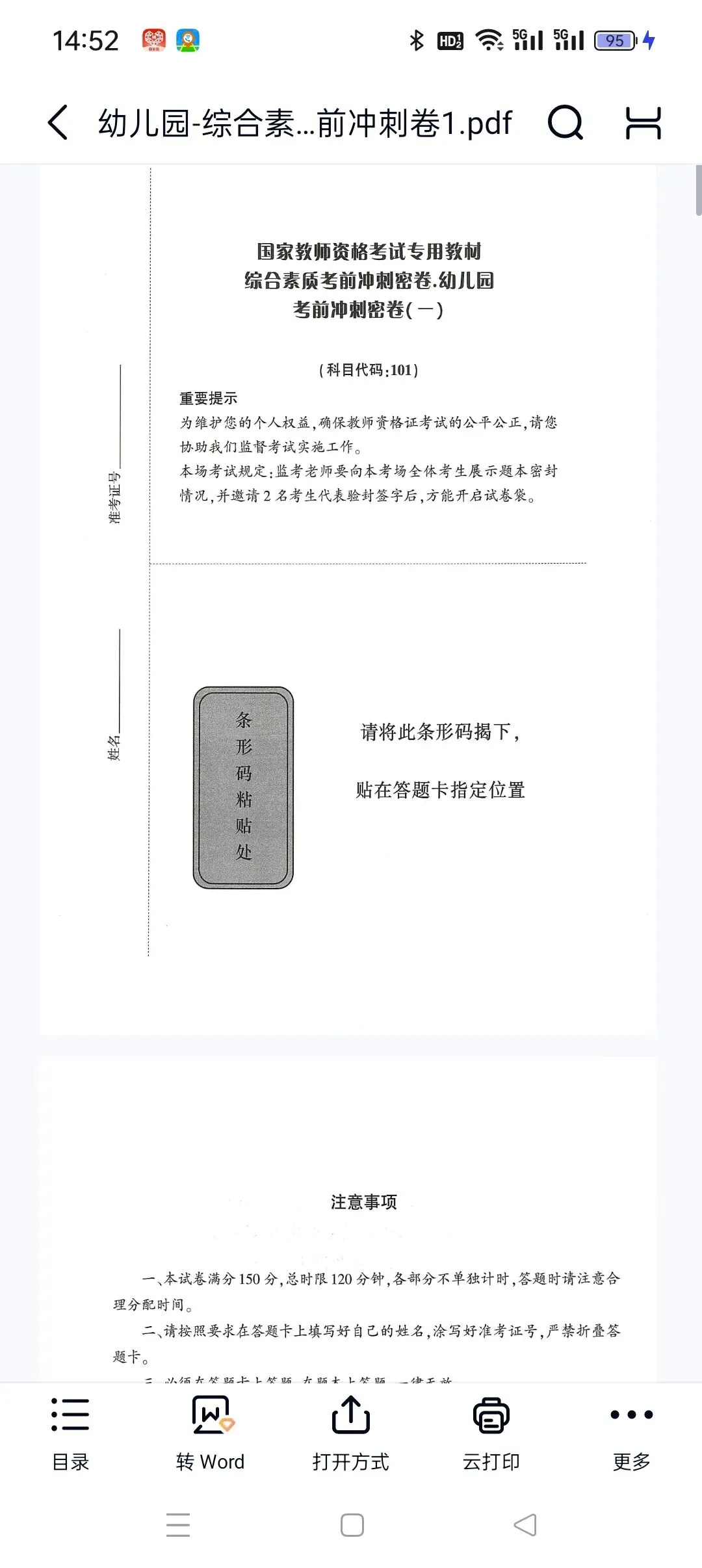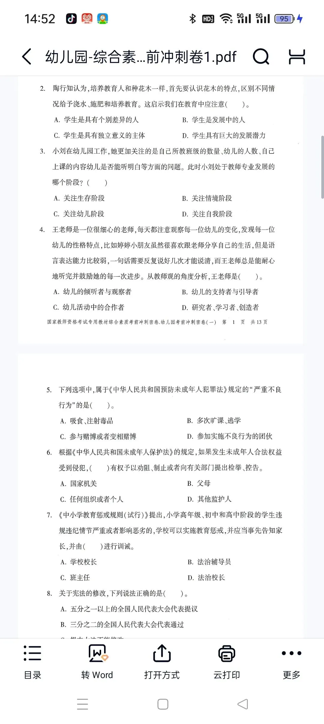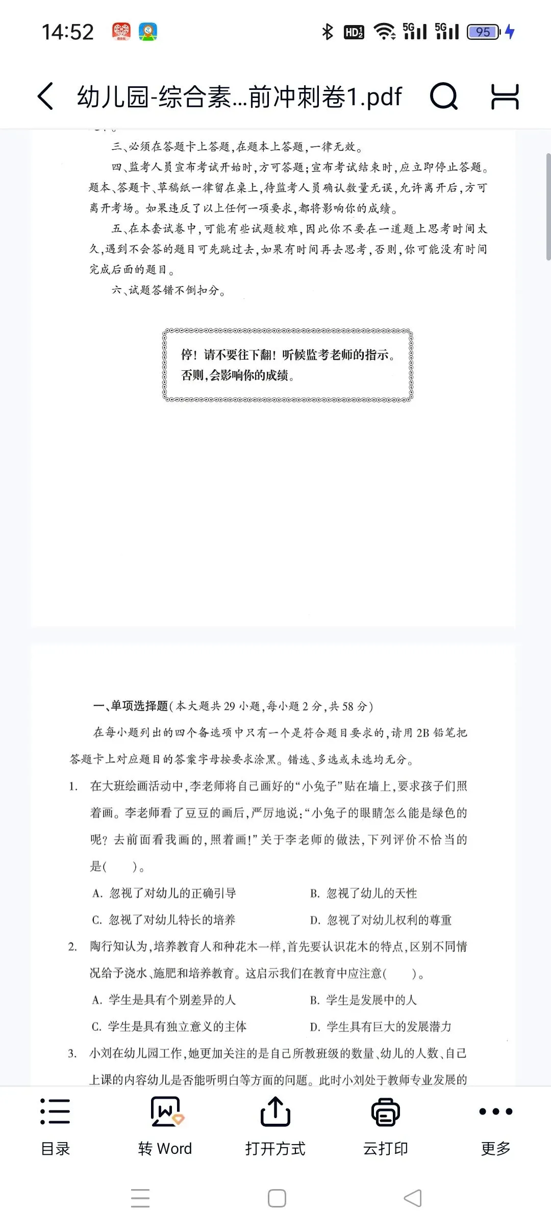 幼儿园-综合素质-考前冲刺卷1.pdf 【高清打印版+答案】