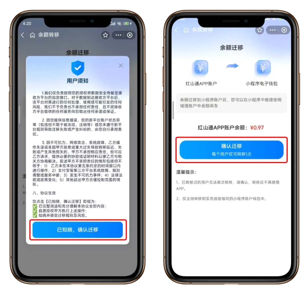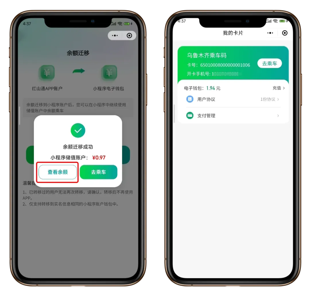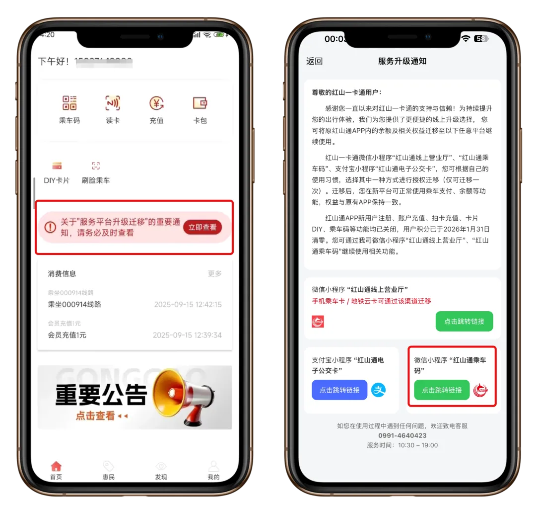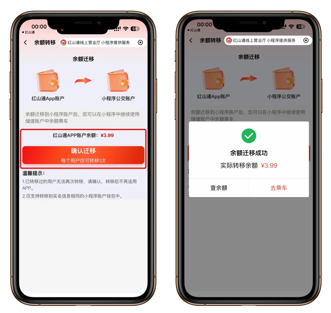 (2)迁移至微信「红山通乘车码」小程序