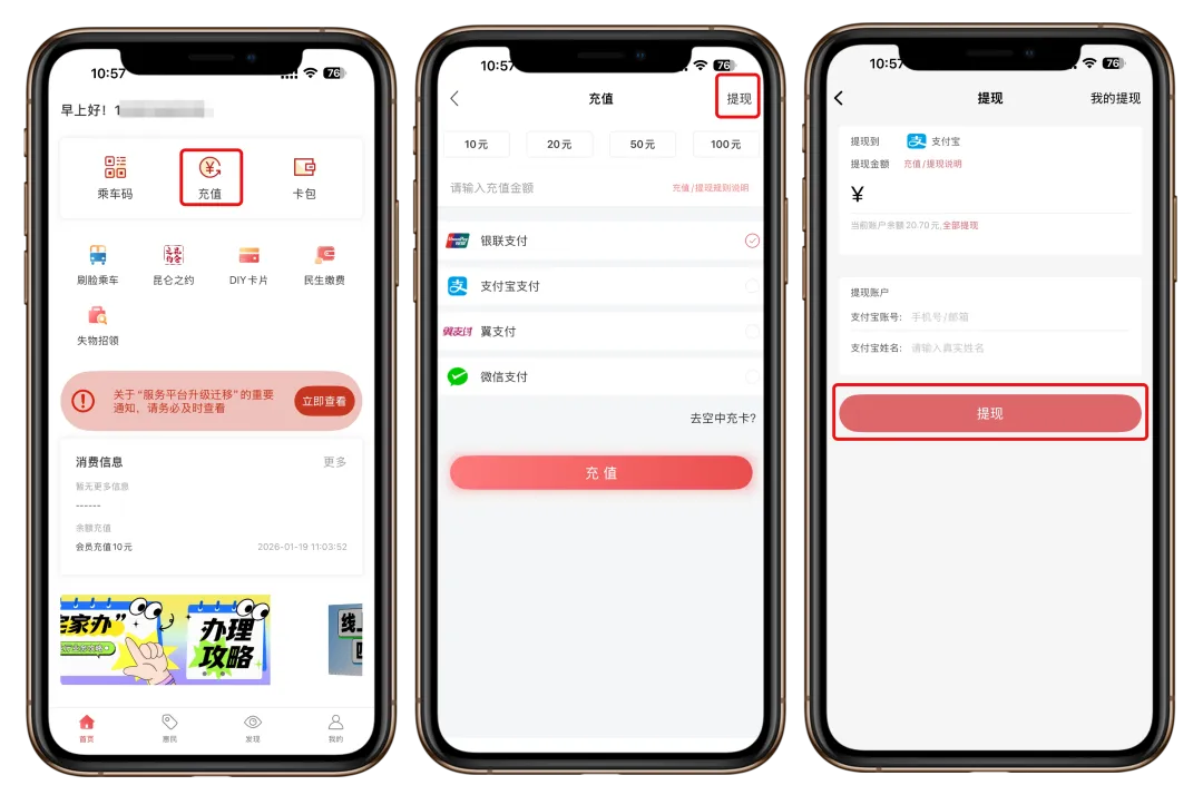 只需三步即可完成手机乘车卡/地铁云卡的迁移: