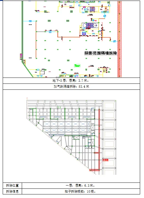 应建设单位需求,对本项目已完工的T3栋地下负三层,地上塔楼九层建筑进行局部结构的拆除,拆除范围如下: