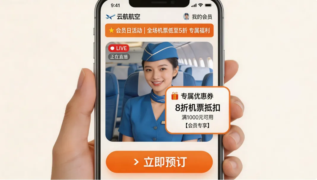 福利精准直达:在App内开展常态化主题直播(如“每周会员日”),直接面向真实会员发放机票折扣券、休息室权益、升舱券等福利,从源头上过滤“羊毛党”。