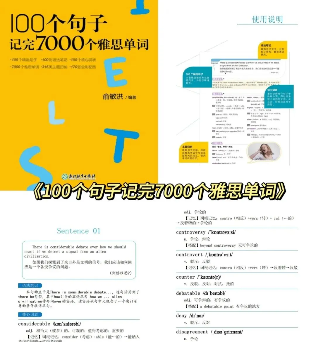 今天,童童给大家整理了考雅思人手一本的词汇书——《100个句子,记完雅思7000个单词》,没事的时候多看多念,无形中就增加词汇量了。