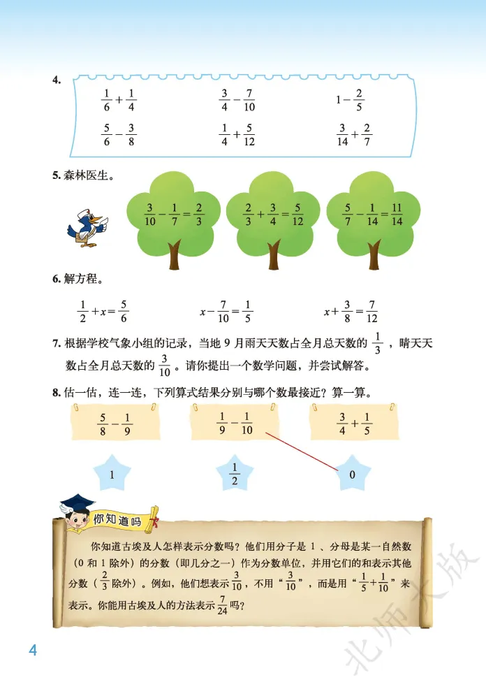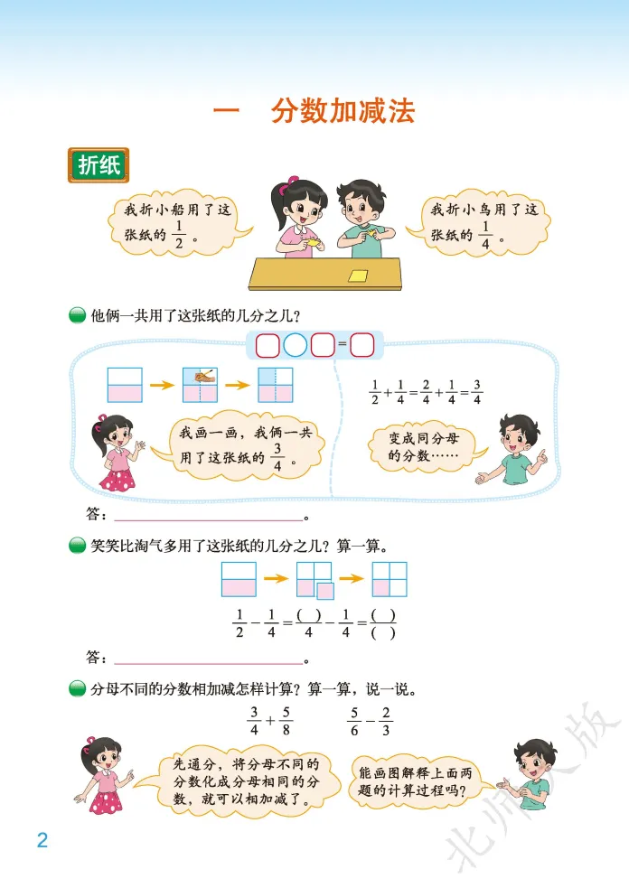 2026 春新北师大版五年级下册数学电子版课本,围绕分数加减法、长方体(一)、分数乘法、长方体(二)、分数除法、确定位置、用方程解决问题、数据的表示和分析等核心内容展开,重空间想象、重算理理解、重方程应用,高清可打印,适配全国北师大版使用地区,适合预习、复习与家校同步辅导。