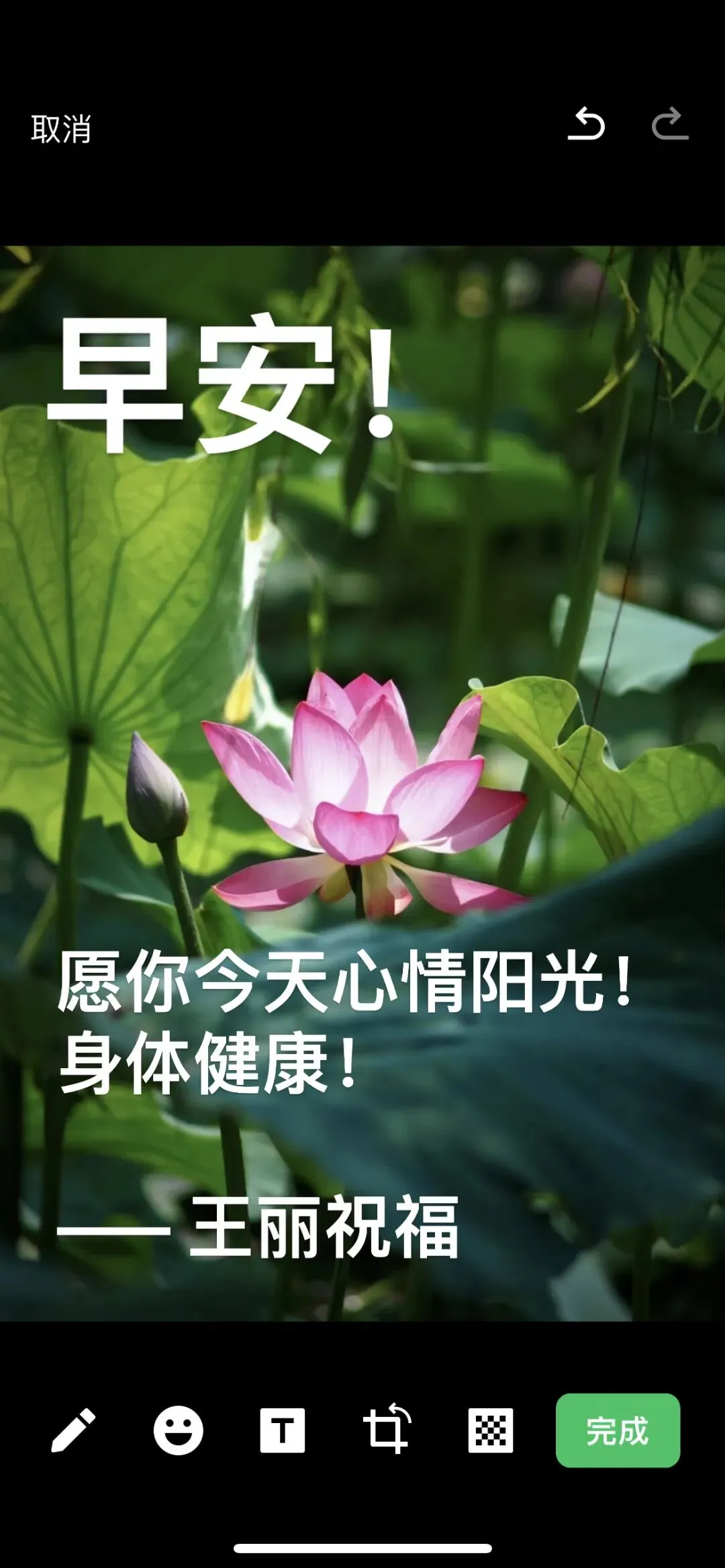 用微信自带功能,就能做一张带问候语、带自己名字的早安图。