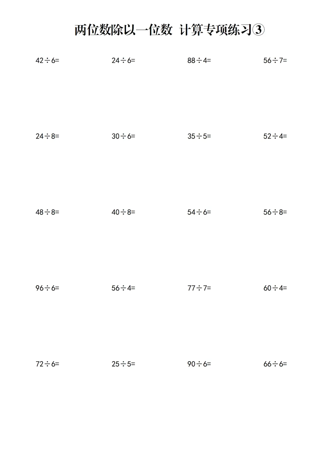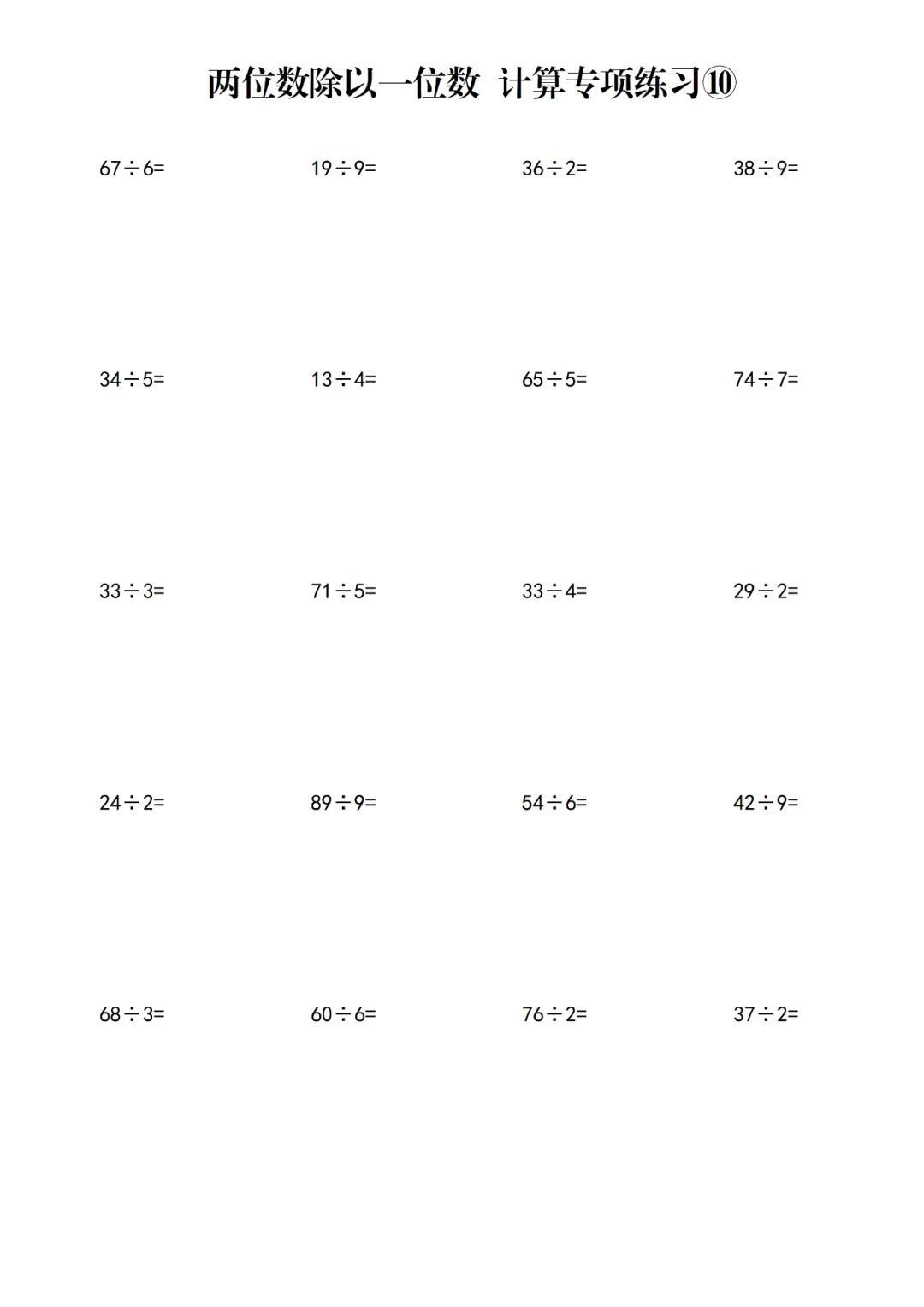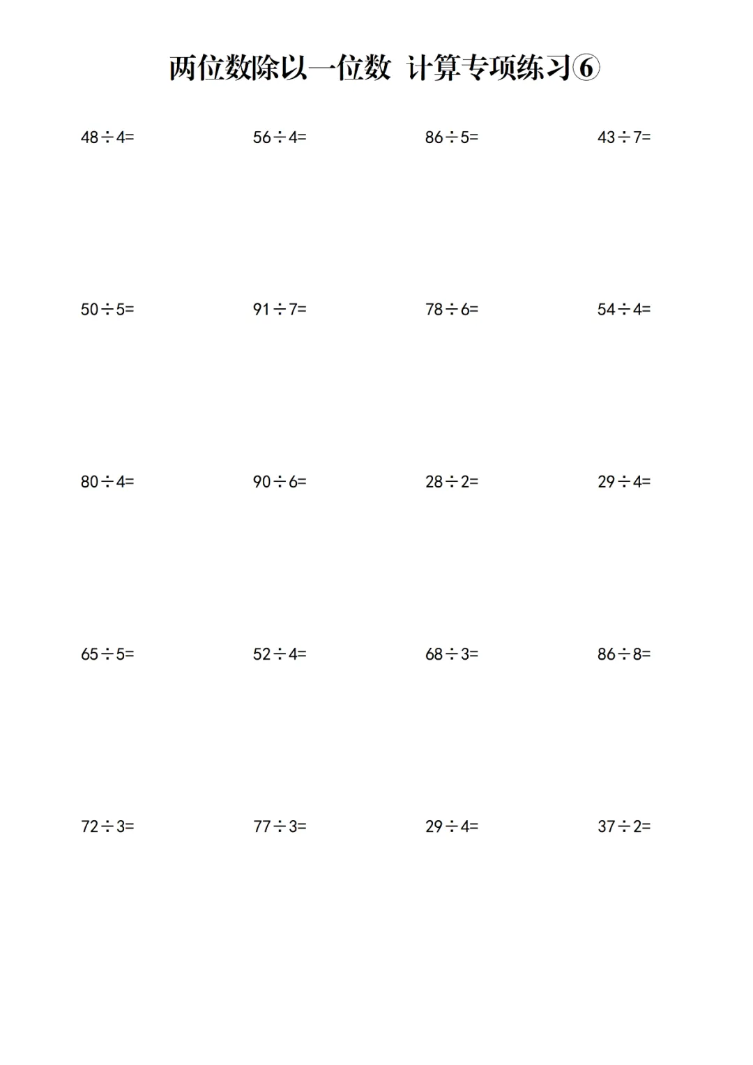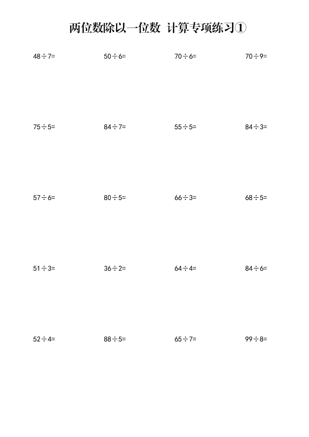 计算专项 | 两位数除以一位数(附可打印电子版)