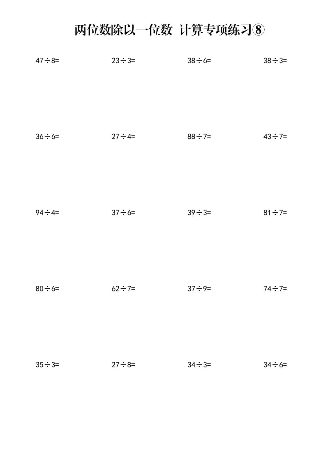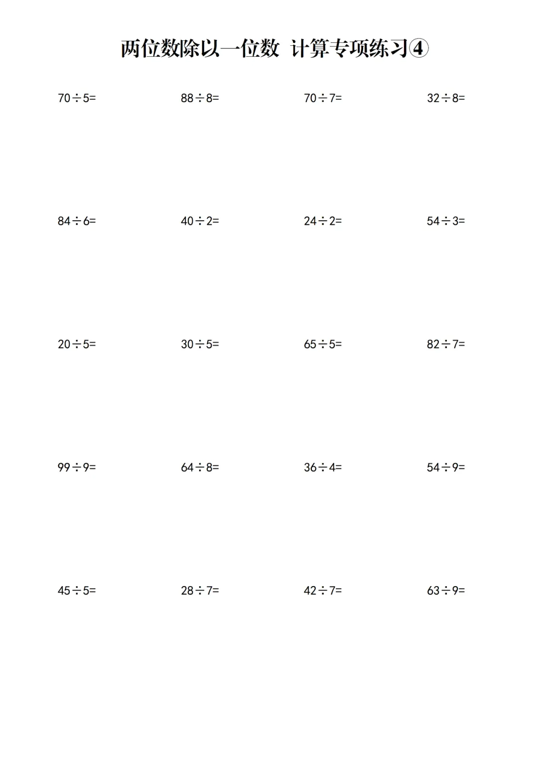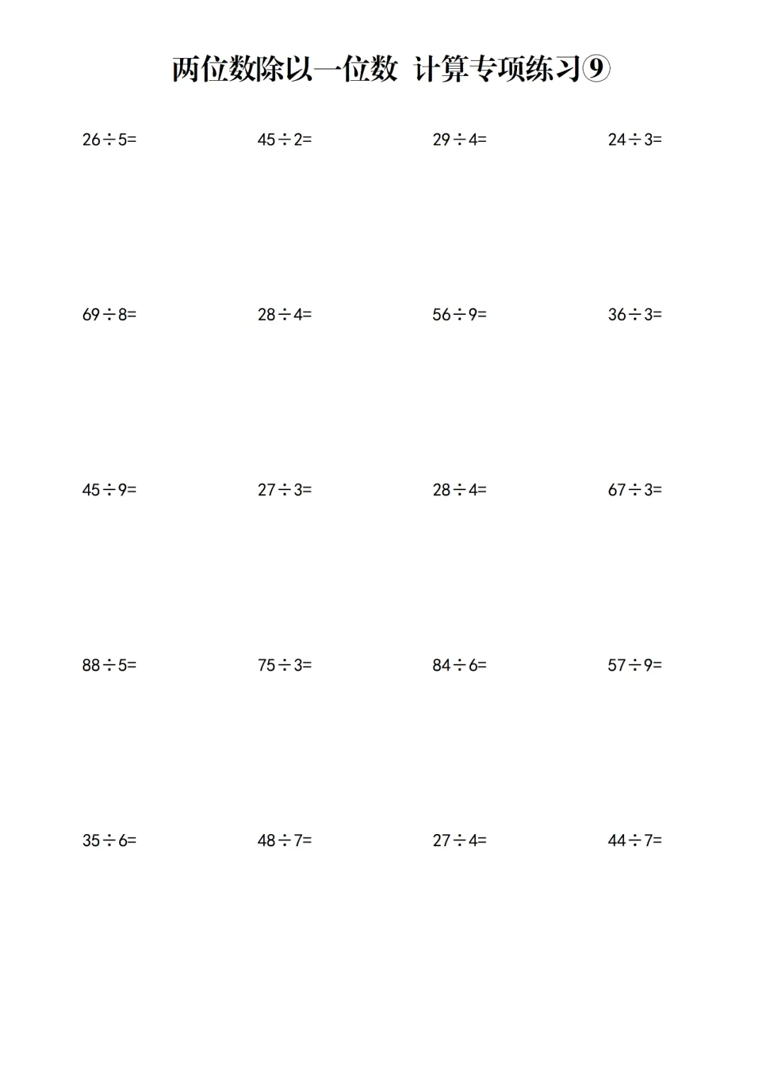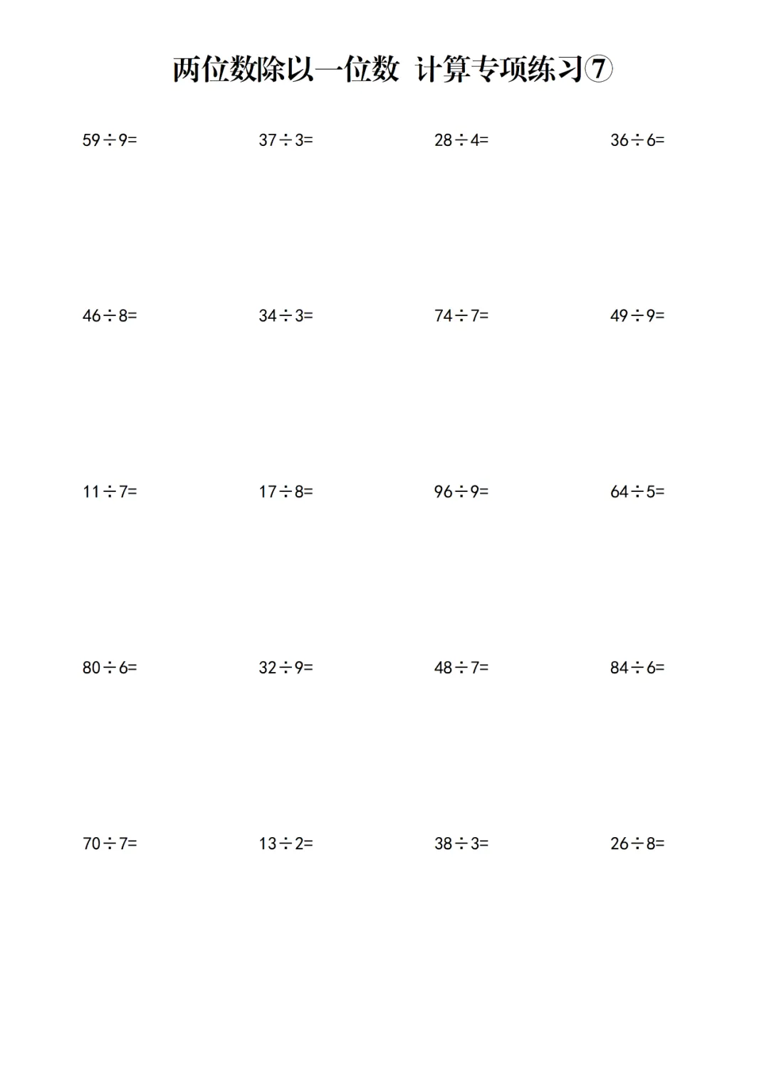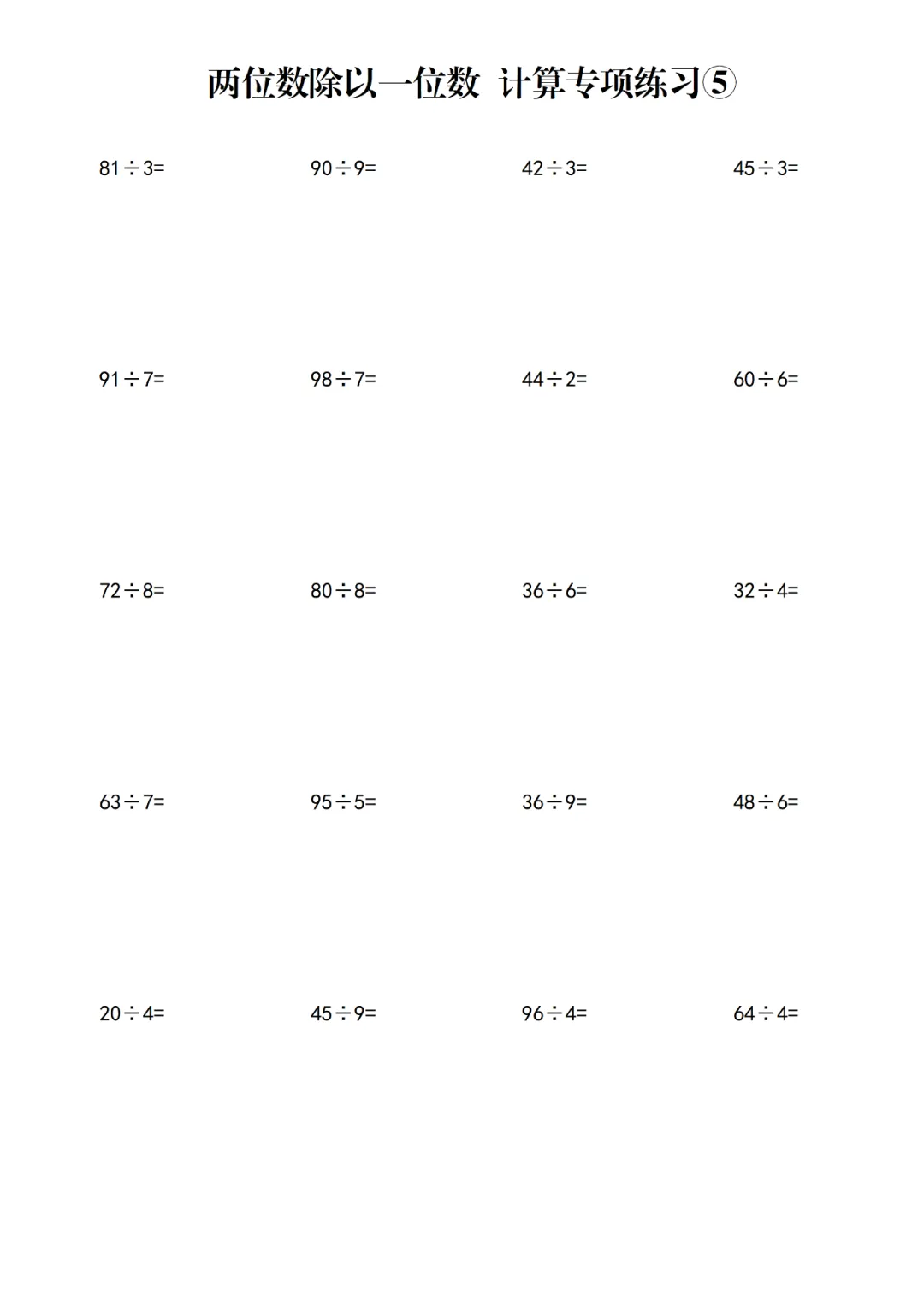 计算专项 | 两位数除以一位数(附可打印电子版)
