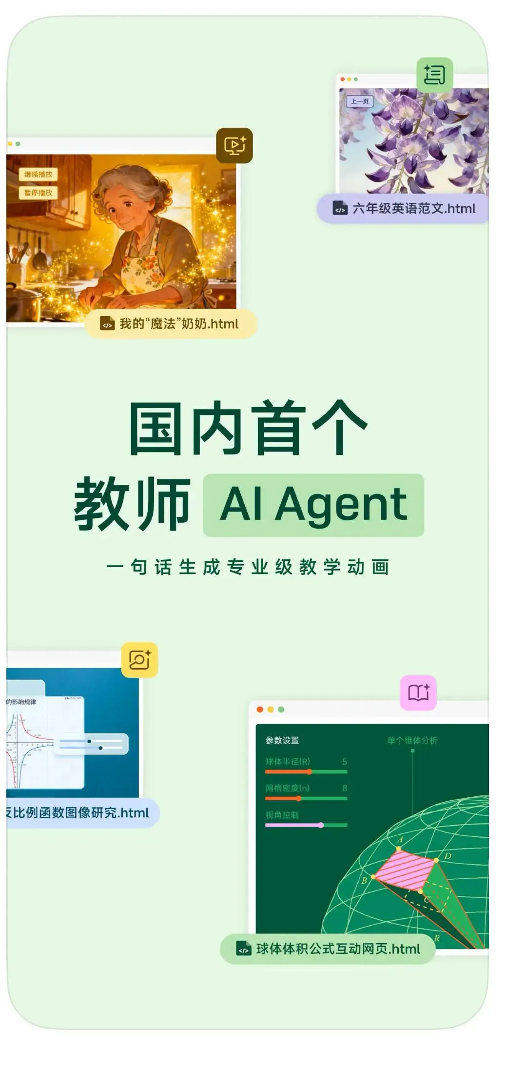 一句话看懂:手机上装个飞象老师,打字/说话/拍课本,AI直接出动画、教案、试卷、游戏课件,上课超省事。