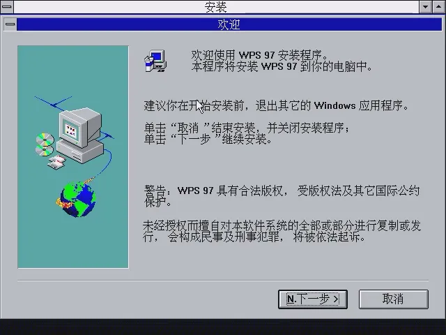 众所周知,WPS 97是一套同时支持16位和32位系统的软件,所以本期测试版将在16位系统Windows 3.2下回顾,下期WPS 97正式版会在32位系统下体验。