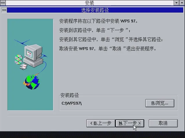 很奇怪,我这包写的是WPS 97 Alpha 3版的安装包,然后配了个Alpha 4版的补丁包,但是安装时直接写的是Alpah 4,有点奇怪。