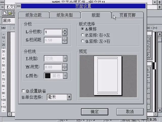 ▲页面设置——版面。