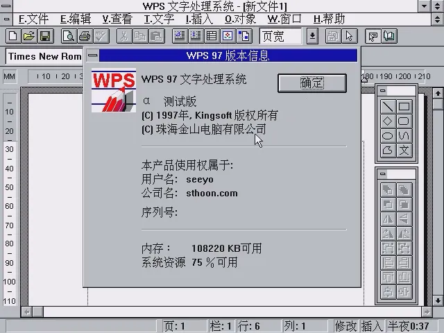 WPS 97内测版:少见的测试版