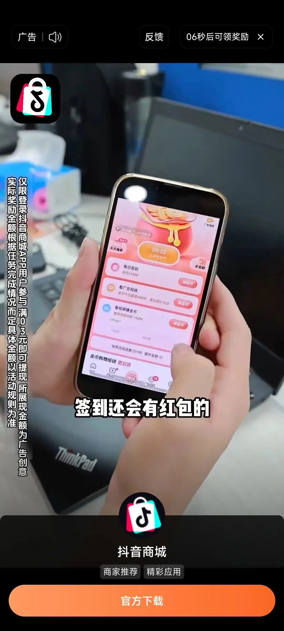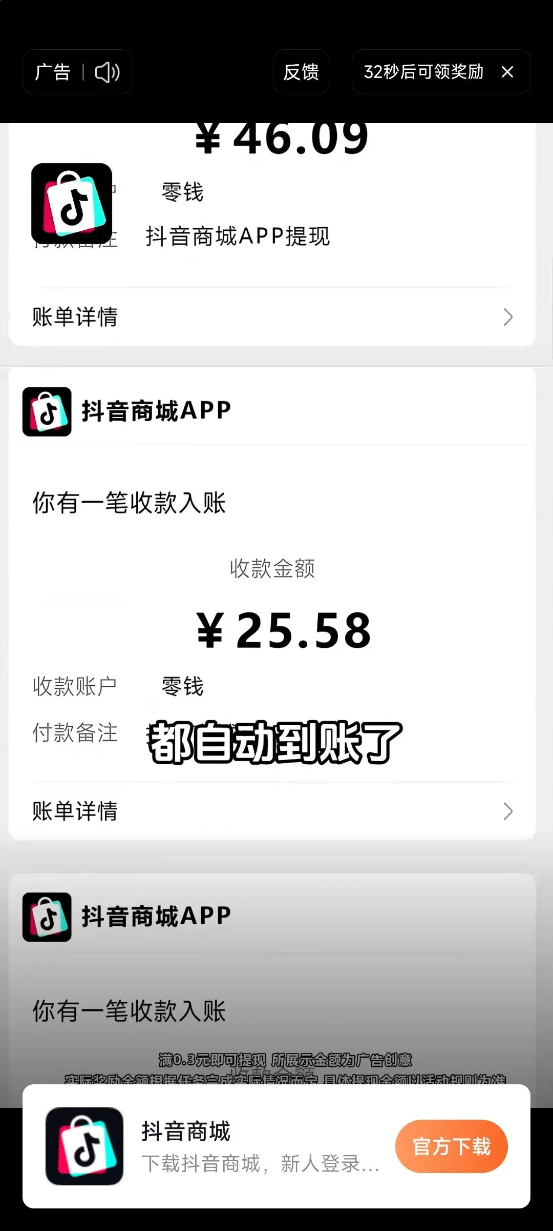 据工信部2025年第四季度移动应用监管通报显示,53款违规赚钱类APP中,悟空浏览器、红果免费短剧均在列,违规行为均涉及“虚假宣传提现条件”“诱导用户过度完成任务”,与抖音商城相关的购物返利违规投诉也居高不下,投诉量同比增长28%。多数用户耗费大量时间精力后,仍无法正常提现,陷入“为赚钱而被收割”的恶性循环。此外,番茄音乐广告中还存在“下载立得29元红包”的虚假承诺,用户下载相关软件后,实际仅能获得0.1元左右的补贴,甚至需连续登录7天才能领取少量奖励,与广告宣传严重不符,这一行为本质上也是“夸大收益”陷阱的延伸,进一步加剧了用户对这类软件的信任危机。