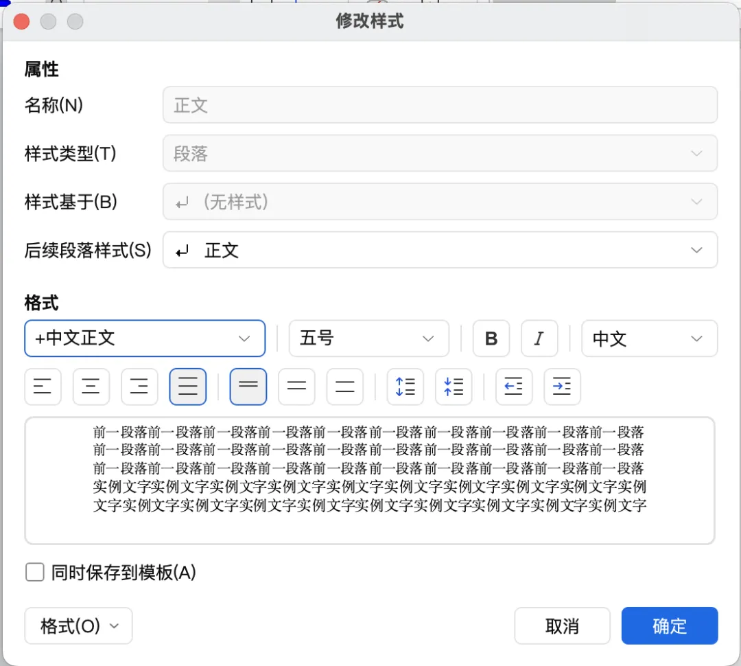 右键“正文” → 修改样式