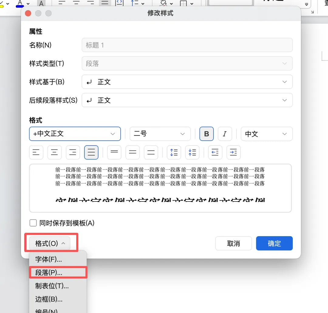 第二步:设置“标题 1”