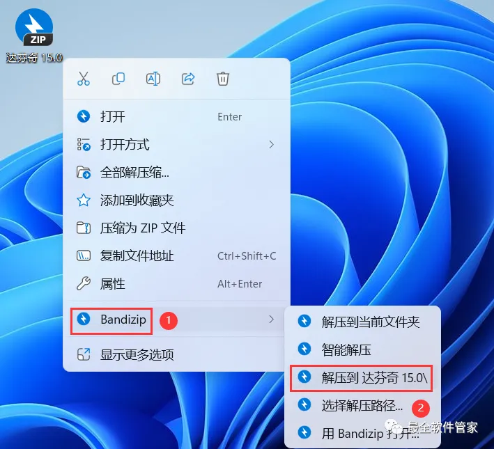 1、下载达芬奇 15.0软件安装包到电脑上,右键选择【解压到达芬奇15.0\】