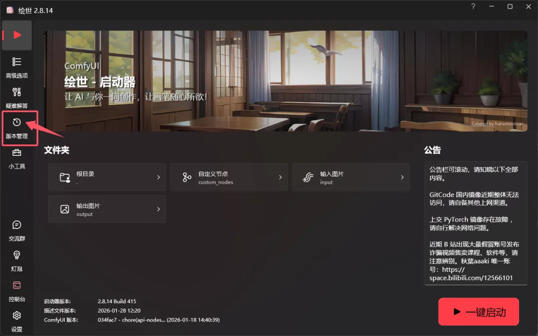 版本回滚:支持恢复到之前的版本“Switch Comfyui”