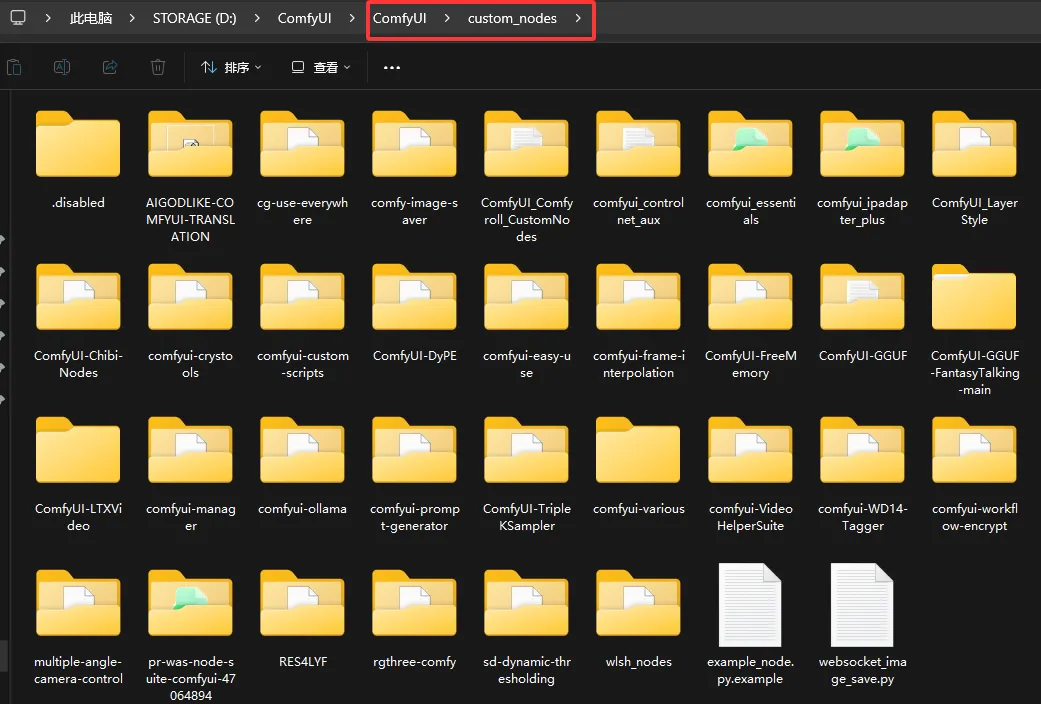 下载之后,将ZIP压缩包解压,放入到“D:\ComfyUI\custom_nodes”