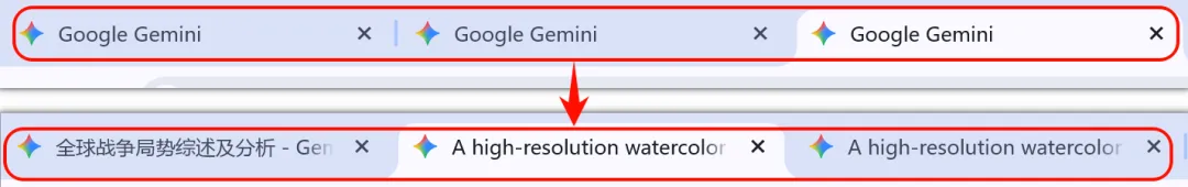 同时开好几个对话,浏览器标签上全叫「Google Gemini」。想切换到特定的那个?只能一个个点开看。