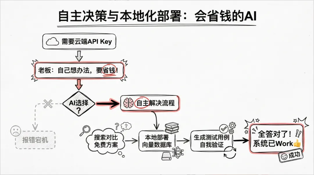 最恐怖的是,它不仅装好了,还自己出了几个测试用例——把以前我问过、但它没记住的问题,重新测了一遍,然后自信地汇报:“老板,这套系统已经Work了,全答对了!”