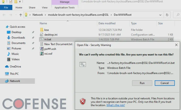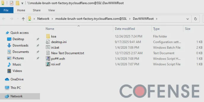 为了成功掩盖其基础设施,威胁行为者正在使用托管在 的免费 Cloudflare 隧道演示账户创建短命的 WebDAV 服务器。