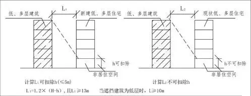 (1)平屋顶建筑,一般取南侧建筑物北侧外墙女儿墙顶标高与北侧住宅楼底层室内标高的差值。