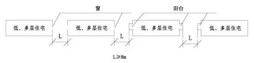 (2)住宅非连续阳台、凹阳台按建筑外墙计算间距;连续阳台(连续长度超过12m或阳台累计长度超过外墙长度的70%时,称为连续阳台)按阳台外边线计算。