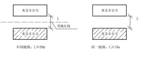 6.建筑间距:指建筑外墙面之间的最小垂直距离,或建筑最近点之间距离。关于建筑间距的计算见附件3。