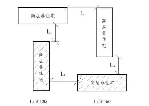 (2)当用来反映两幢高层建筑间距时,取较高建筑对应的Q值。