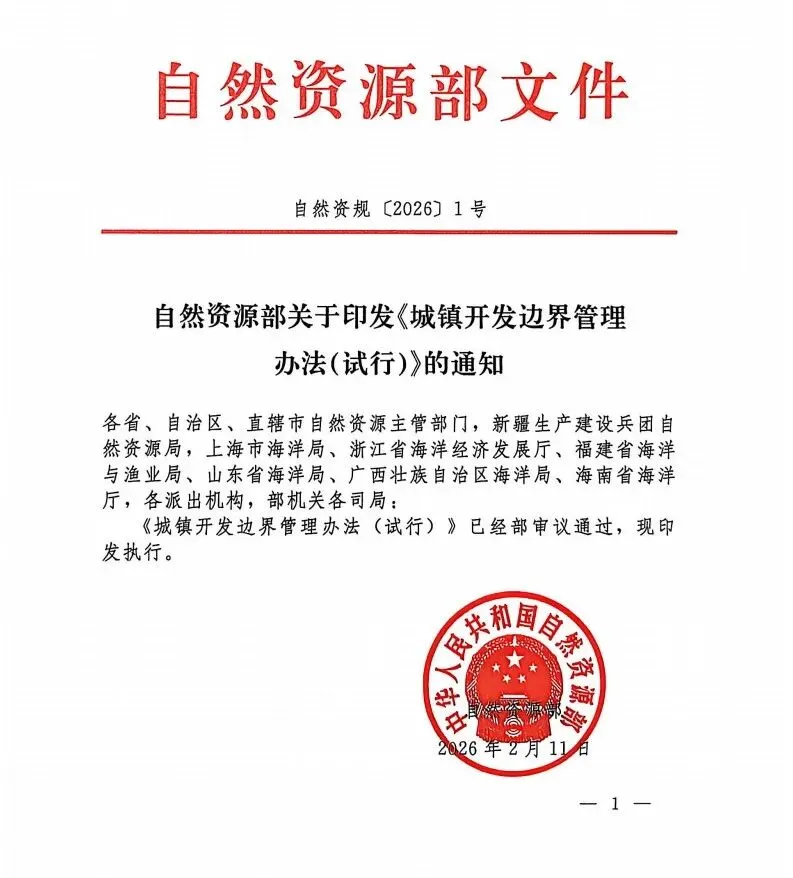 【政策文件】《城镇开发边界管理办法(试行)》(自然资规〔2026〕1号)