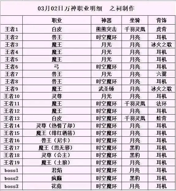 【冒险大作战】3月2日app万神职业明细