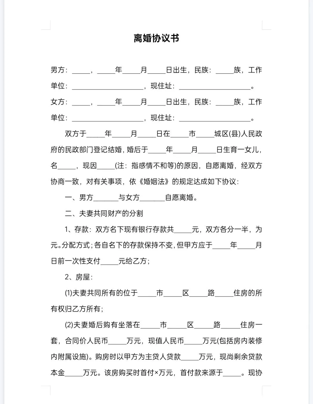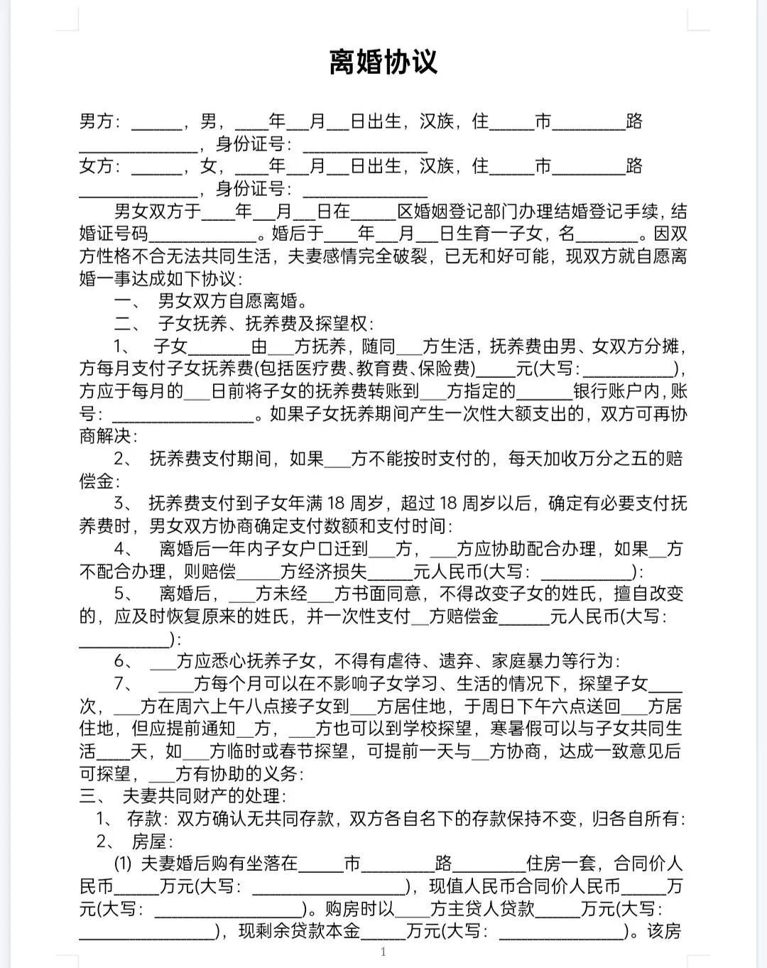 各类型离婚协议书模板分享(可编辑打印)