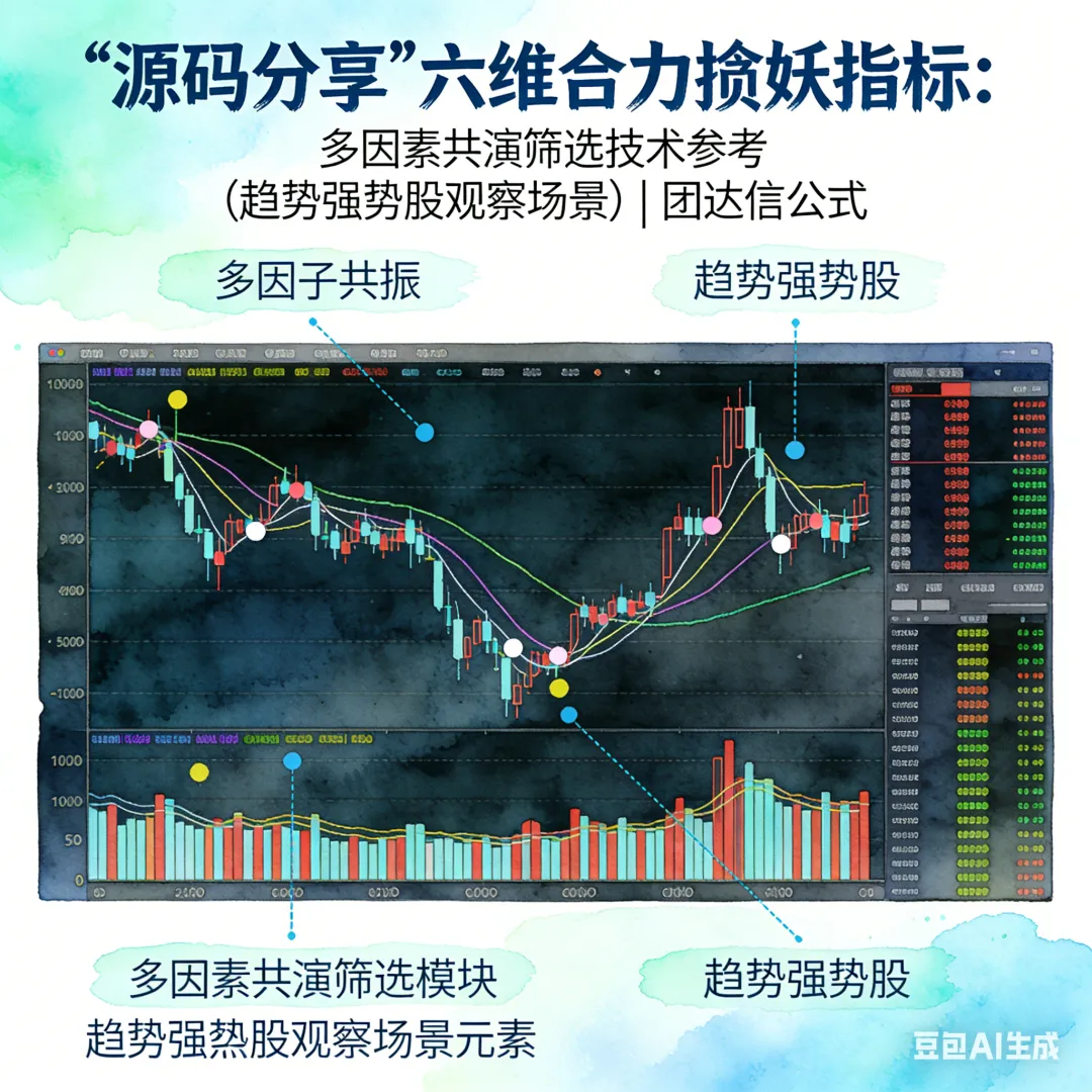 【源码分享】六维合力擒妖指标:多因子共振筛选的技术参考(趋势强势股观察场景)| 通达信公式