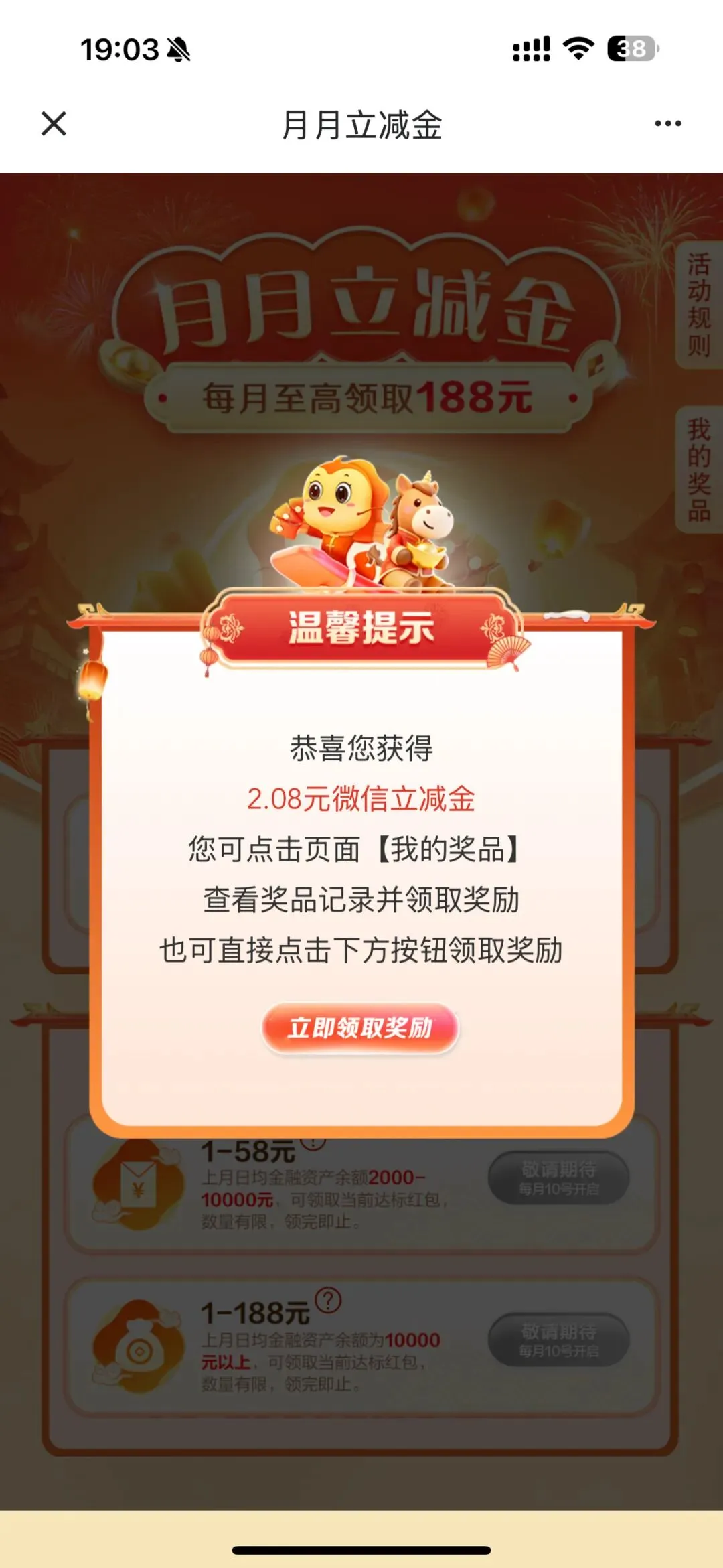 另外,今天是新的一个月,建行立减金活动正好又可以参加一次,每月一次,有建行卡的,冲!!!