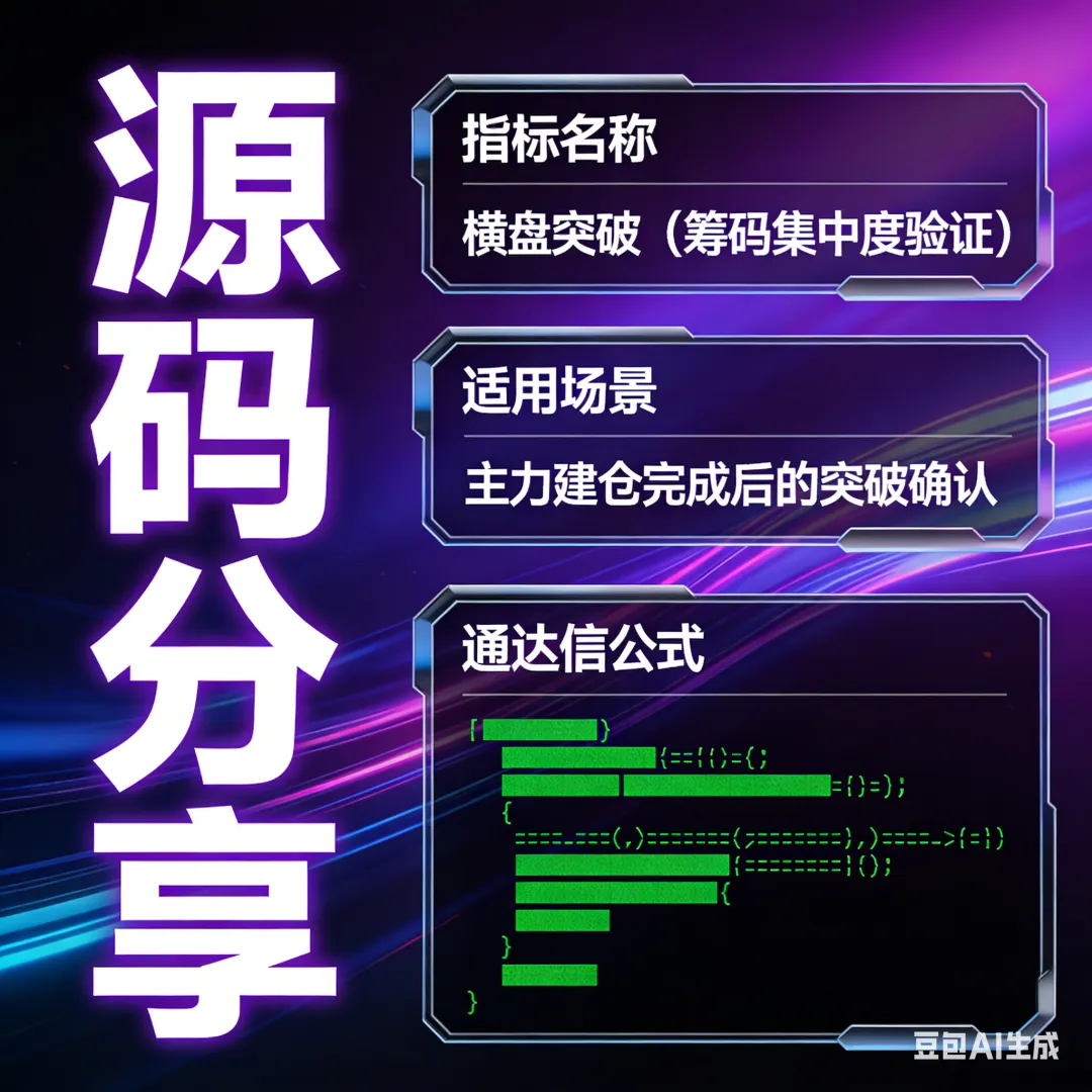 适用场景:捕捉底部横盘整理后的有效突破 | 核心逻辑:筹码集中度+平台突破+量能验证 | 源码状态:需根据逻辑自建或购买完整版